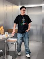 The 24ss Colorful Logo T-Shirt is a vibrant addition to your wardrobe. Crafted from premium cotton. this t-shirt features a bold and colorful logo design on the front. making a statement with its bright hues. Its relaxed fit. crew neckline. and short sleeves ensure comfort and ease of wear. Perfect for casual occasions. it pairs effortlessly with jeans or shorts for a lively and stylish look.