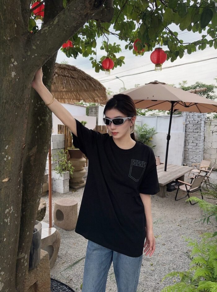 The 24ss FF Embroidery Logo Fake Pocket T-Shirt combines minimalist design with elegant detailing. This T-shirt features a high-quality fabric that ensures comfort and durability. The standout detail is the FF embroidery logo on the fake pocket. adding a touch of sophistication and brand recognition. Designed for versatility. it can be effortlessly paired with various outfits for both casual and semi-formal occasions. The tailored fit enhances your silhouette. while the breathable material keeps you comfortable all day.