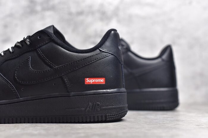 Equipped with an encapsulated Air-Sole unit in the midsole. the Air Force 1 Low Supreme Black offers responsive cushioning for all-day wear. This sneaker perfectly merges Nike’s classic design with Supreme’s minimalist aesthetic. making it a must-have for sneaker enthusiasts and streetwear aficionados alike.
