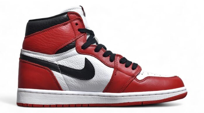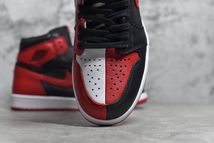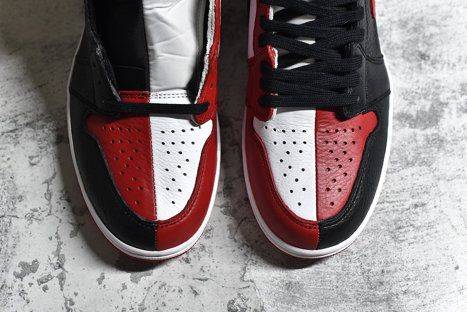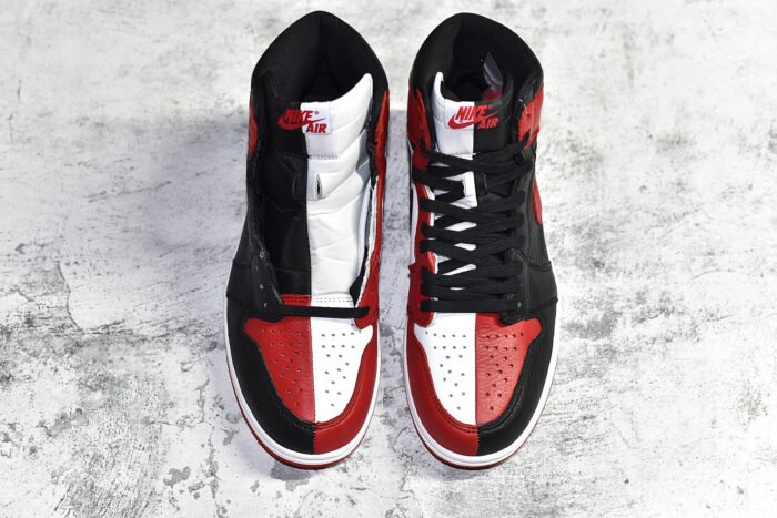 The Air Jordan 1 High Homage to Home Chicago pays tribute to the rich heritage of the iconic Chicago Bulls franchise and the city of Chicago itself. This unique iteration of the classic Jordan silhouette features a split design. combining two of the most iconic colorways associated with the Air Jordan 1: the “Bred” and “Chicago” color schemes. One half of the shoe showcases the familiar black and red colorway of the “Bred” iteration. while the other half features the classic white. black. and red combination of the “Chicago” colorway. This distinctive design is complemented by premium leather construction and the iconic Air Jordan wings logo on the ankle collar. With its bold and eye-catching aesthetic. the Air Jordan 1 High Homage to Home Chicago is a must-have for sneaker enthusiasts and collectors alike.