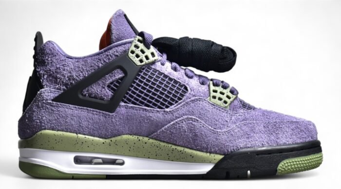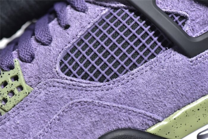 The Air Jordan 4 Retro Canyon Purple stands out with its vibrant colorway and premium materials. This iconic sneaker features a mix of white leather and canyon purple accents. offering a fresh and bold look. The mesh underlays ensure breathability. while the padded collar and tongue provide extra comfort. The visible Air-Sole unit in the heel delivers responsive cushioning. perfect for all-day wear. Durable rubber outsole with a herringbone pattern enhances traction and grip. This pair exudes contemporary style and quality construction. making it a must-have for sneaker enthusiasts.