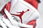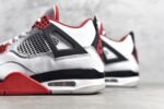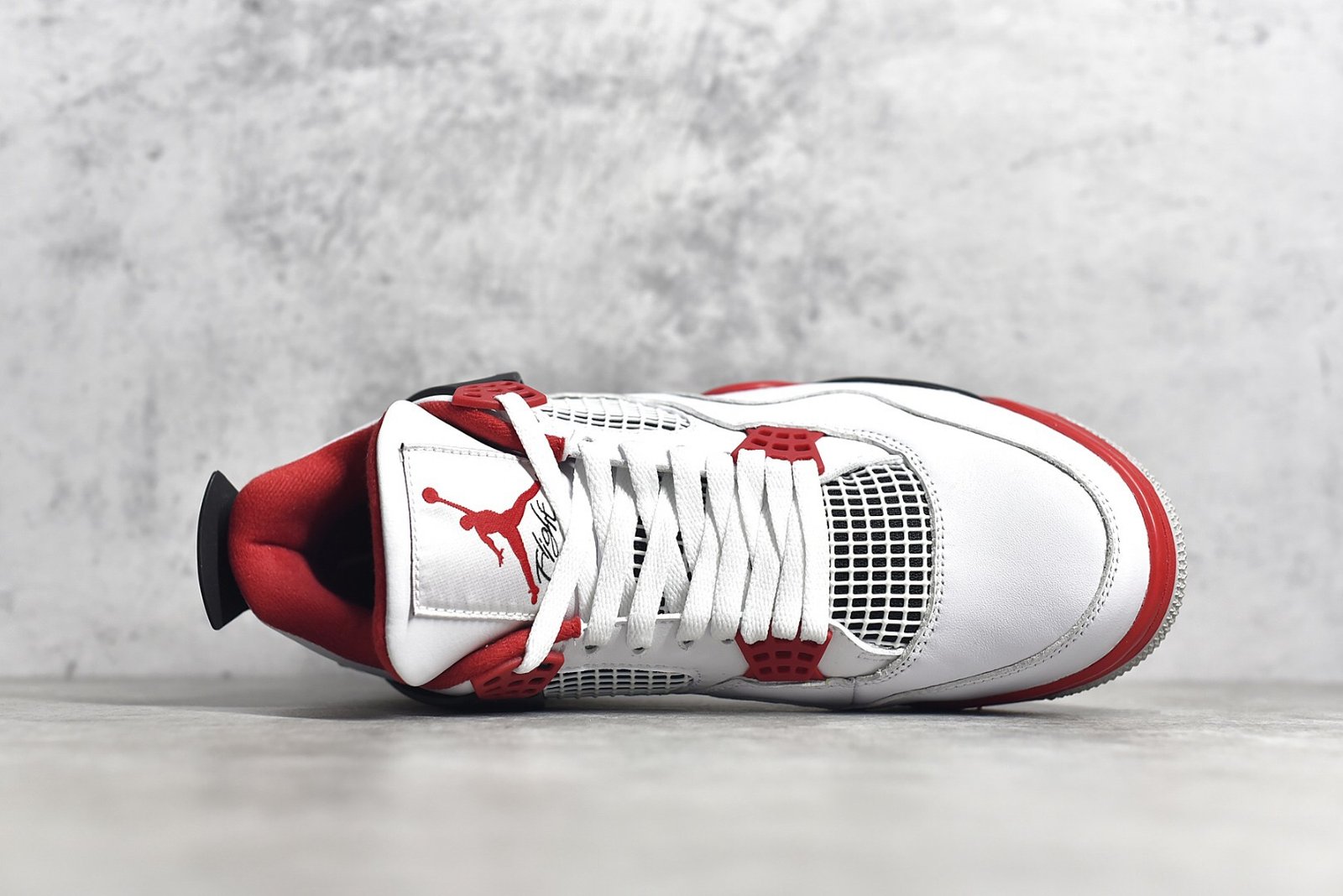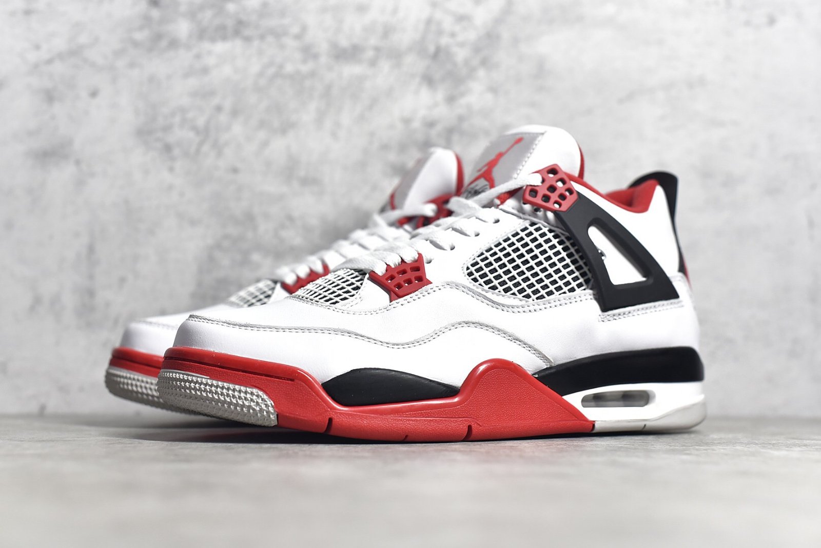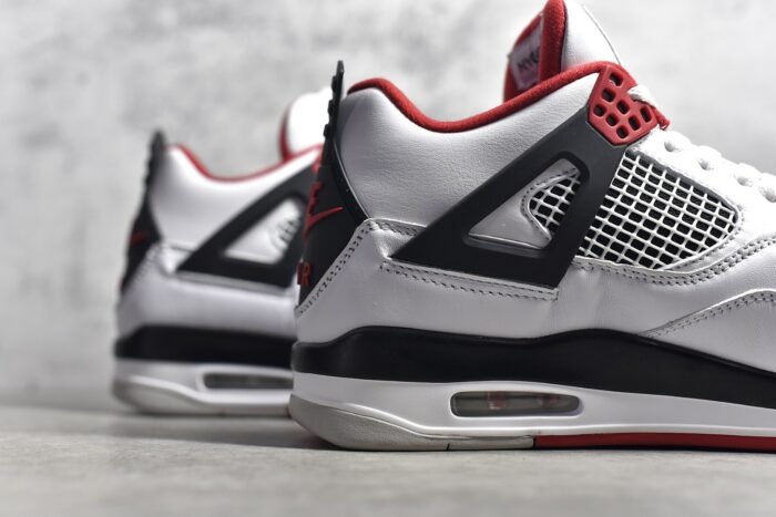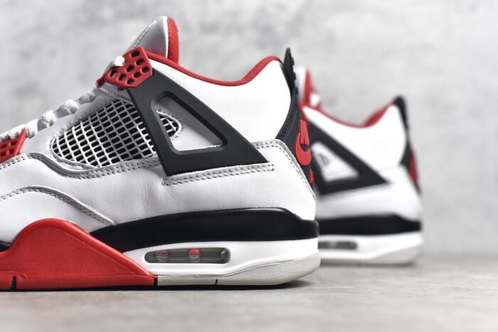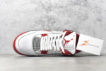 The Air Jordan 4 Retro Fire Red stands out with its classic colorway and premium materials. This iconic sneaker features a mix of white leather and vibrant fire red accents. offering a timeless and bold look. The mesh underlays ensure breathability. while the padded collar and tongue provide extra comfort. The visible Air-Sole unit in the heel delivers responsive cushioning. perfect for all-day wear. Durable rubber outsole with a herringbone pattern enhances traction and grip. This pair exudes retro style and quality craftsmanship. making it a must-have for sneaker enthusiasts.