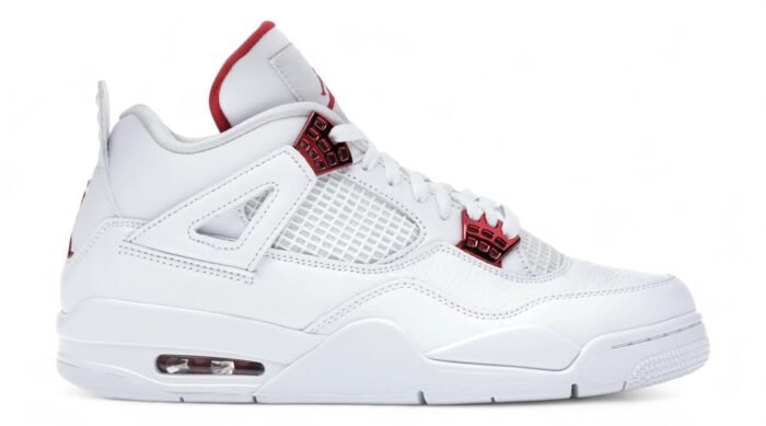 The Air Jordan 4 Retro ‘Red Metallic’ is a standout with its vibrant colorway and premium materials. This iconic sneaker features a mix of red leather and metallic silver accents. offering a bold and sleek look. The mesh underlays ensure breathability. while the padded collar and tongue provide extra comfort. The visible Air-Sole unit in the heel delivers responsive cushioning. perfect for all-day wear. Durable rubber outsole with a herringbone pattern enhances traction and grip. This pair epitomizes modern style and quality craftsmanship. making it a must-have for sneaker enthusiasts.