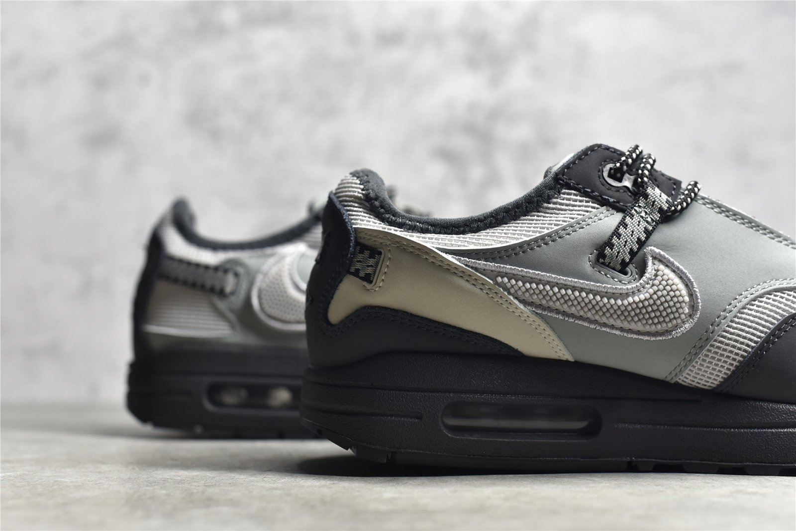 The Air Max 1 Cave Stone x Travis Scott combines Travis Scott’s distinct aesthetic with the classic Air Max 1 silhouette. Featuring a unique “Cave Stone” colorway. this sneaker offers a blend of earthy tones that evoke a rugged and outdoorsy feel. Crafted from premium materials such as suede and mesh. it ensures durability and breathability. The design includes signature Travis Scott details like subtle branding elements and custom stitching patterns. adding a personalized touch. A visible Air-Sole unit in the midsole provides responsive cushioning for all-day comfort. while a durable rubber outsole offers traction and stability. This collaboration is perfect for sneaker enthusiasts looking for standout style and craftsmanship.