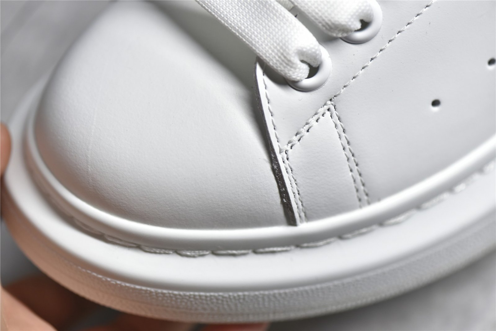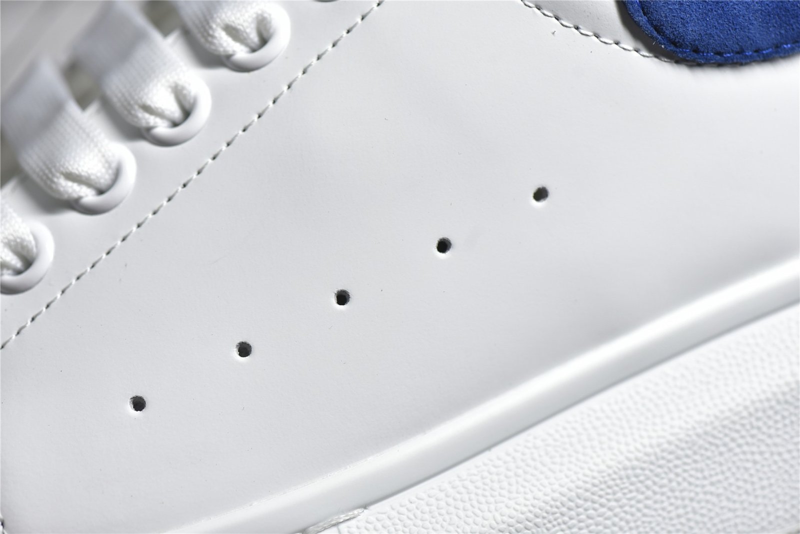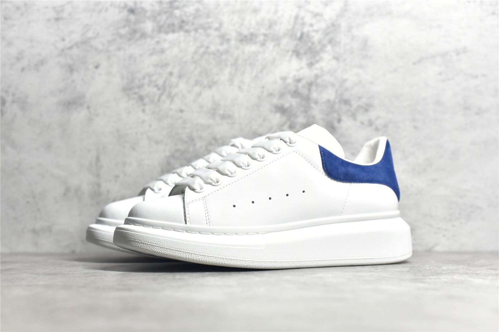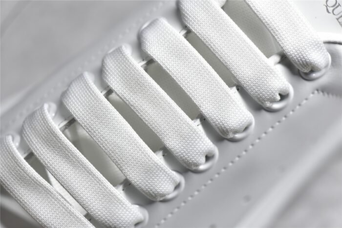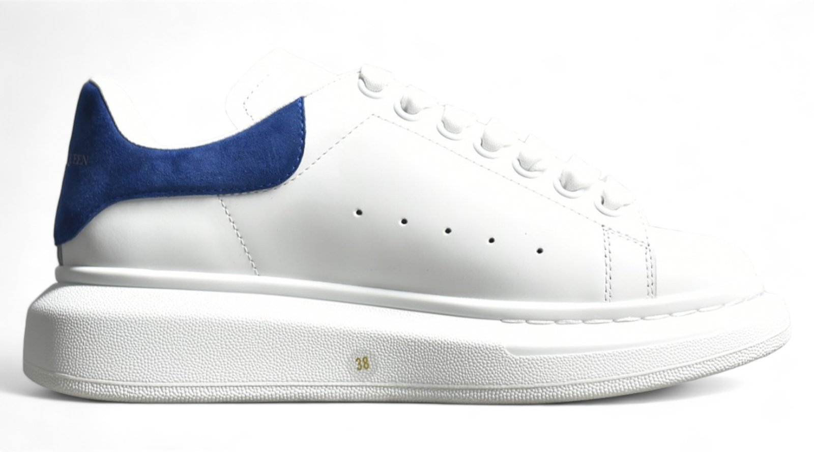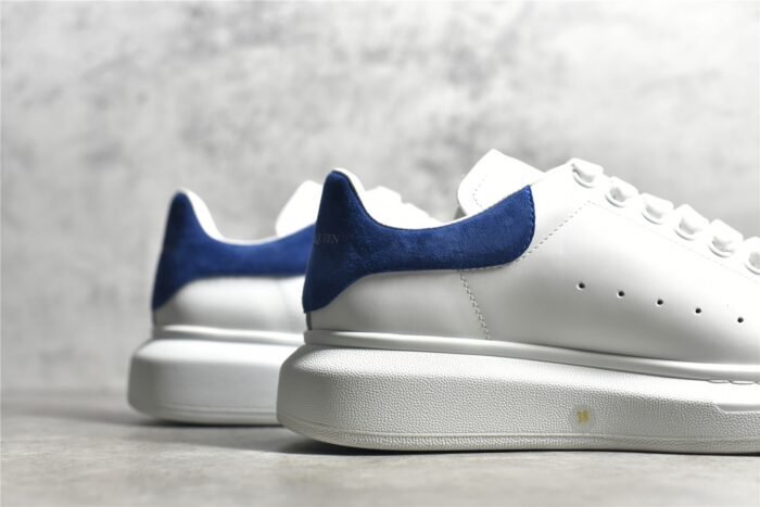 The Alexander McQueen Oversized Sole Sneaker Suede Heel stands out with its elegant design and premium materials. This iconic sneaker features a smooth white leather upper and a contrasting suede heel tab. offering a sophisticated yet modern look. The padded collar and tongue ensure extra comfort. while the lace-up front provides a secure fit. The oversized rubber sole adds a unique touch and enhances durability. This pair blends contemporary style with everyday functionality. making it a must-have for sneaker enthusiasts.