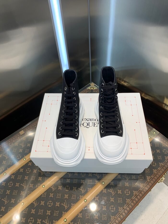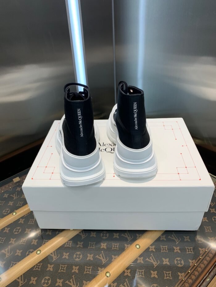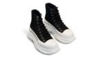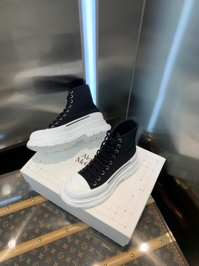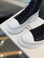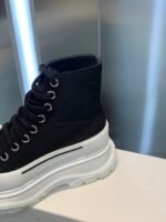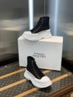 The Alexander McQueen Tread Slick Boot Black commands attention with its bold design and superior craftsmanship. These boots feature a durable black canvas upper paired with a chunky. oversized rubber sole for a contemporary edge. The lace-up front ensures a customizable fit. while the exaggerated tread pattern enhances traction and grip. A padded collar and tongue provide added comfort. Perfect for making a statement. these boots blend luxury with functionality.