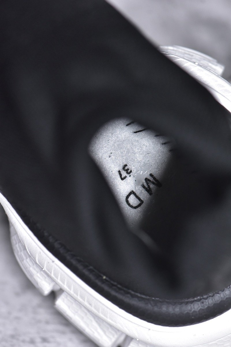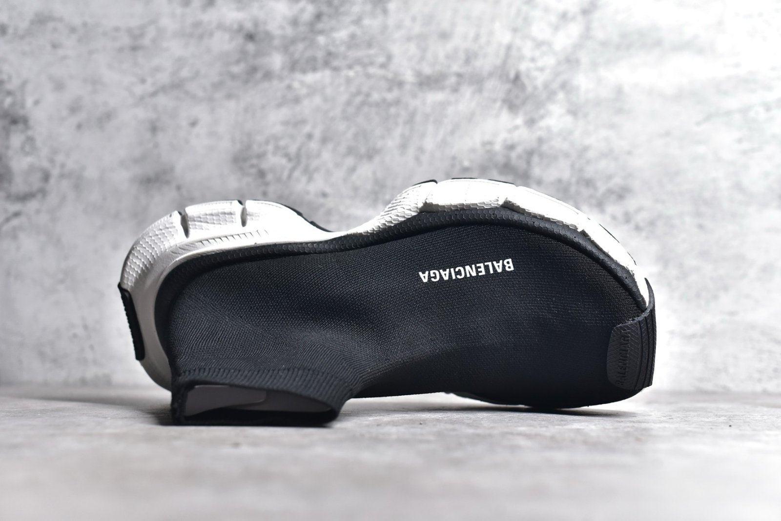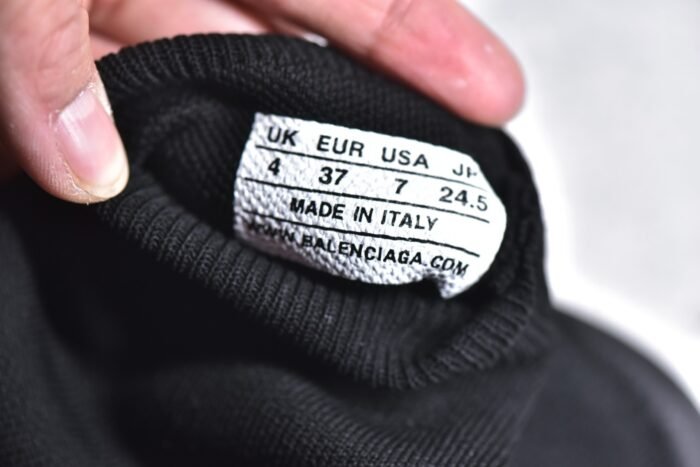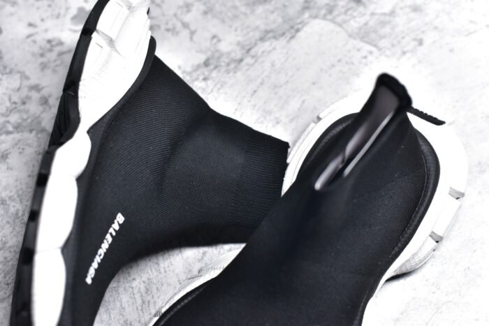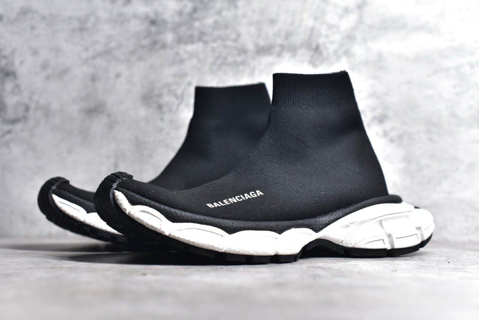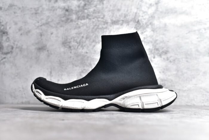 The Balenciaga 3XL Sock Recycled Knit Sneaker in Black redefines contemporary sneaker design with its sustainable materials and sleek silhouette. These sneakers are crafted from a black recycled knit fabric that wraps around the foot. offering a snug. sock-like fit. The minimalist upper is complemented by subtle Balenciaga branding. creating a streamlined and modern look. The innovative design includes a lightweight. exaggerated 3XL sole that provides excellent cushioning and support. making these sneakers perfect for all-day wear. The pull-tab on the heel ensures easy on and off. while the textured outsole enhances grip and traction. Ideal for those who value eco-friendly fashion without compromising on style. the Balenciaga 3XL Sock Recycled Knit Sneaker in Black is a versatile addition to any wardrobe.