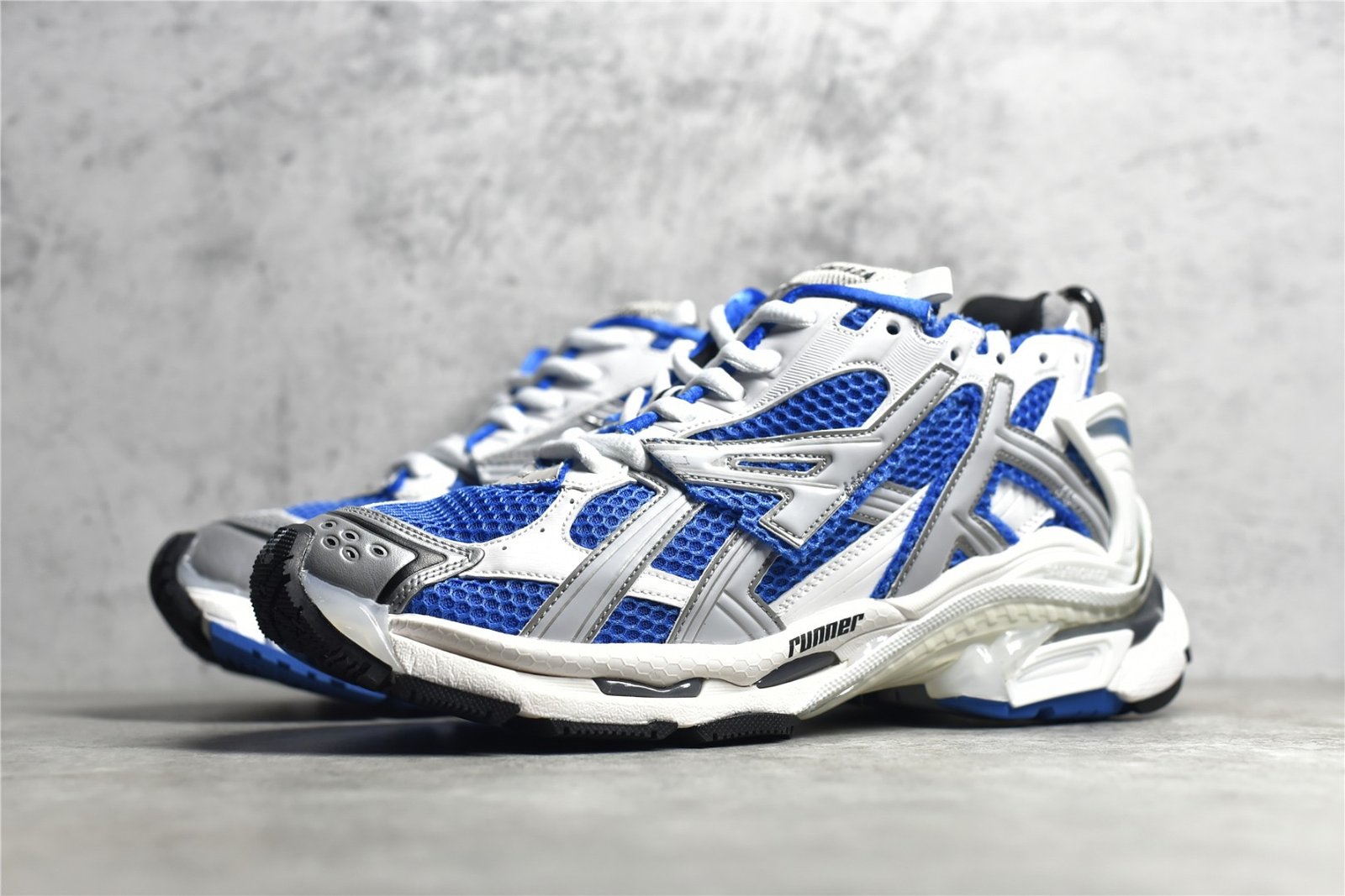 The Balenciaga Runner Sneaker combines contemporary style with superior craftsmanship. With its sleek design and high-quality materials. this sneaker offers both aesthetic appeal and practicality. The breathable mesh upper ensures ventilation. while the lace-up closure provides a secure and adjustable fit. Padded elements in the collar and tongue enhance comfort and support during wear. A cushioned midsole delivers responsive cushioning for long-lasting comfort. Finished with a durable rubber outsole that provides excellent traction and stability. the Balenciaga Runner Sneaker is perfect for urban settings and everyday wear.