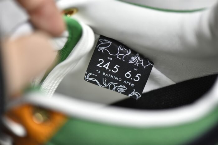 The BAPE Sta “Tokyo” – Blue Green stands out with its vibrant colorway and premium materials. This iconic sneaker features a mix of blue leather and green accents. offering a bold yet classic look. The perforated toe box ensures breathability. while the padded collar and tongue provide extra comfort. The cushioned midsole delivers responsive cushioning. perfect for all-day wear. Durable rubber outsole with a star pattern enhances traction and grip. This pair blends heritage style with modern functionality. making it a must-have for sneaker enthusiasts.