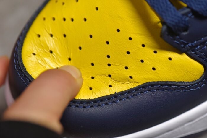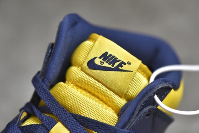 - Design Elements: Features a vibrant varsity maize base with midnight navy overlays. inspired by the University of Michigan’s team colors. Nike branding is present on the tongue tag. heel. and insoles.