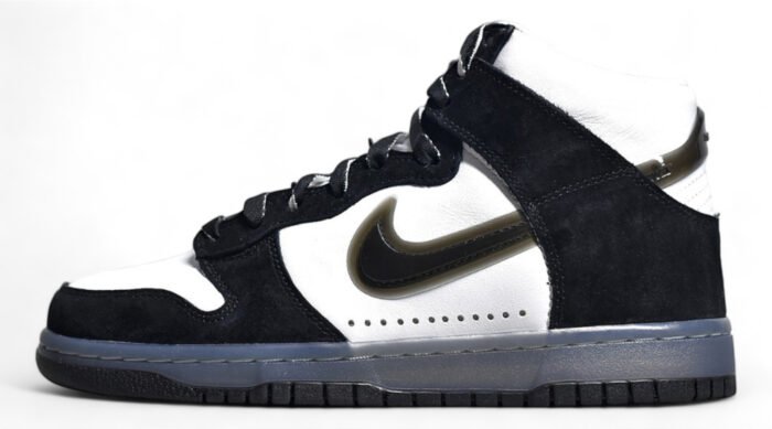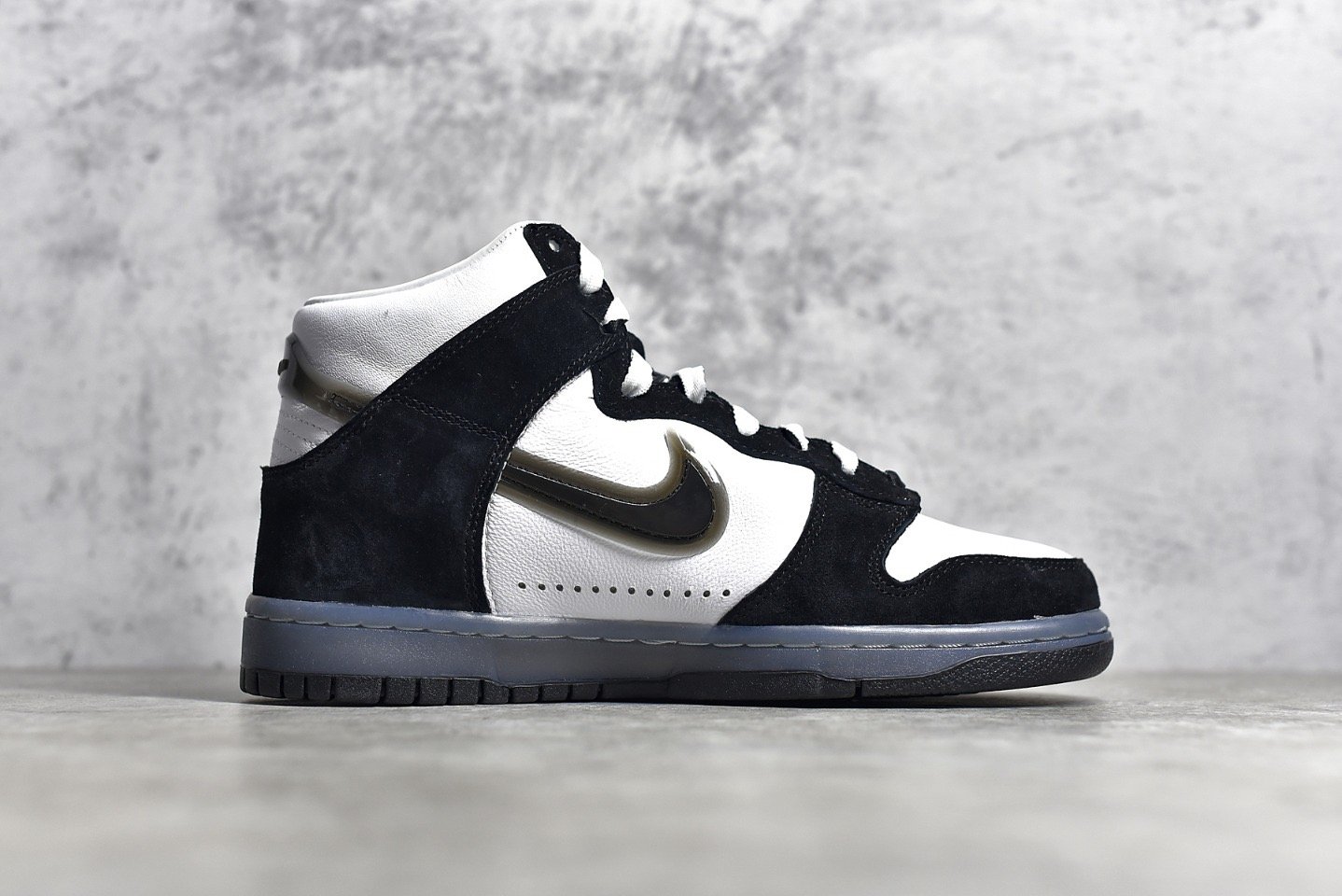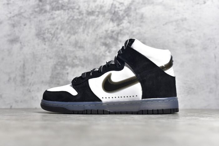 The Dunk High Slam Jam White Black DA1639-101 is a collaboration between Nike SB and Slam Jam. known for its unique design and premium materials. Here are the typical features of this shoe: