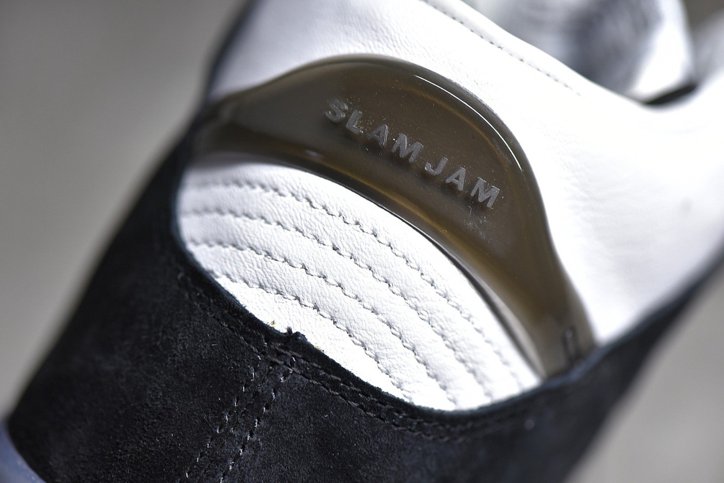 - Design Elements: Features a clean and minimalist design with Slam Jam branding on the tongue tag and insoles. The color blocking is simple yet effective. combining white and black for a versatile look.