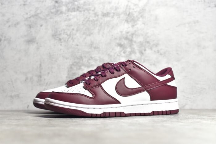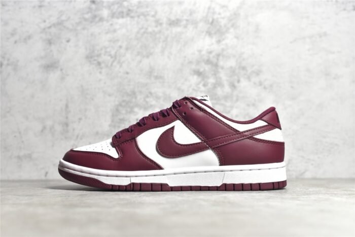 The Dunk Low Bordeaux DD1503-108 stands out with its rich colorway and timeless design. This stylish sneaker features a premium white leather upper with striking Bordeaux accents. creating a classic and elegant look. The perforated toe box enhances breathability. while the padded collar and tongue ensure superior comfort. A cushioned midsole provides excellent support. making it perfect for all-day wear. The durable rubber outsole with a classic tread pattern offers reliable traction and grip. This pair is versatile. ideal for both casual and sporty outfits.