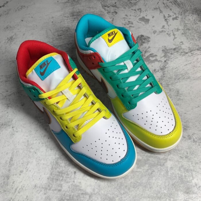 The Dunk Low Free 99 White DH0952-100 is a vibrant and eye-catching sneaker from Nike. known for its playful color scheme and premium materials. Here are the typical features of this shoe: