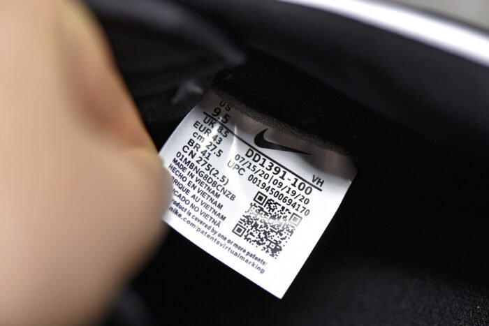 - Design Elements: Features a clean white base with contrasting black overlays. creating a sleek and timeless design. Nike branding is present on the tongue tag. heel. and insoles.