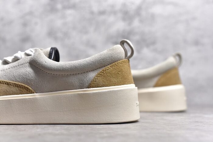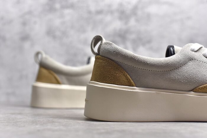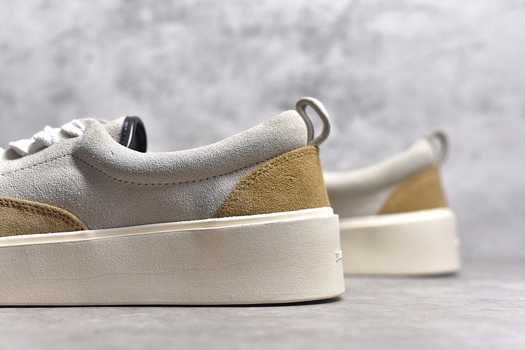The Fear Of God 101 Low Top Vintage Yellow Suede combines retro-inspired style with modern comfort and craftsmanship. Crafted from premium yellow suede. this low-top sneaker features a vibrant and eye-catching color that stands out. The minimalist design is complemented by tonal stitching. enhancing its sleek appearance. A padded collar ensures comfort. while the lace-up closure provides a secure fit. With a cushioned insole for all-day wearability and a durable rubber outsole for traction. these sneakers offer both timeless elegance and contemporary functionality.