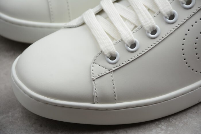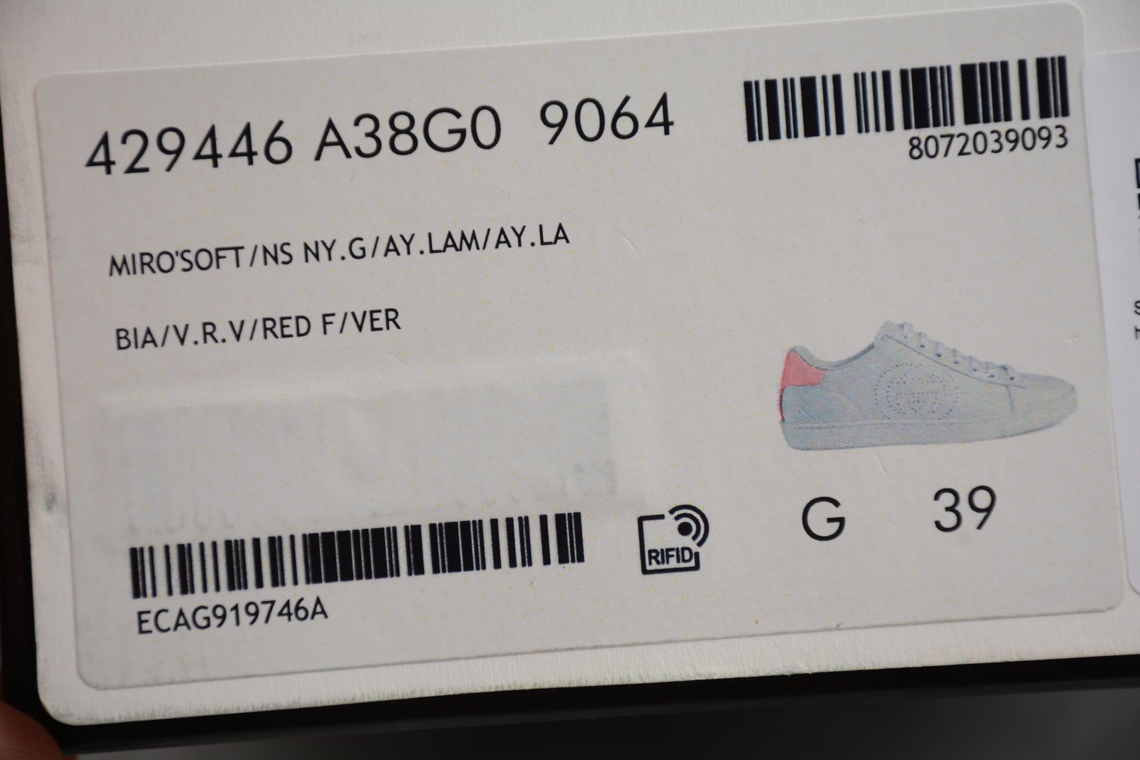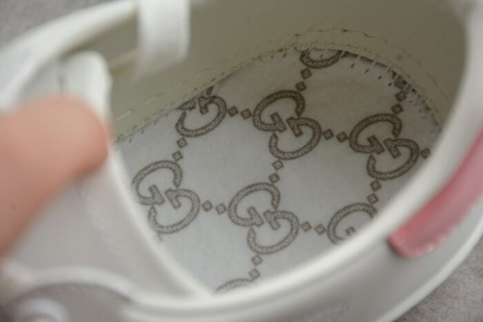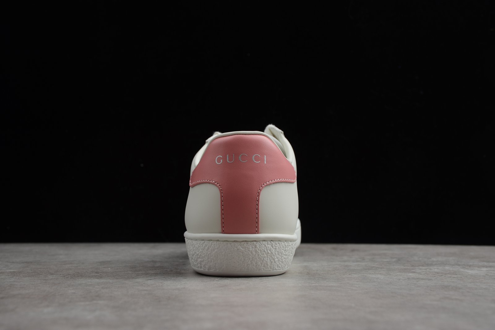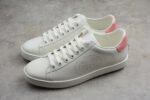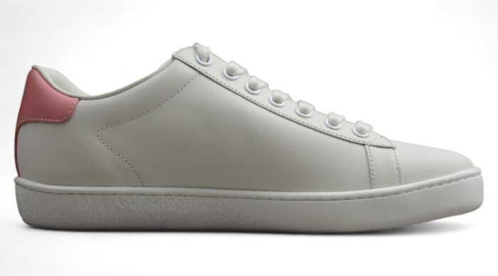 The Gucci Ace Leather Sneaker with Pink Heel Tab stands out with its clean design and luxurious materials. These stylish sneakers feature a white leather upper with a vibrant pink heel tab. offering a fresh and fashionable look. The signature Gucci green and red web stripe adds a touch of iconic branding. while the cushioned insole ensures all-day comfort. The rubber sole provides excellent traction and stability. perfect for everyday wear. This pair blends classic elegance with modern functionality. making it a must-have for fashion enthusiasts.
