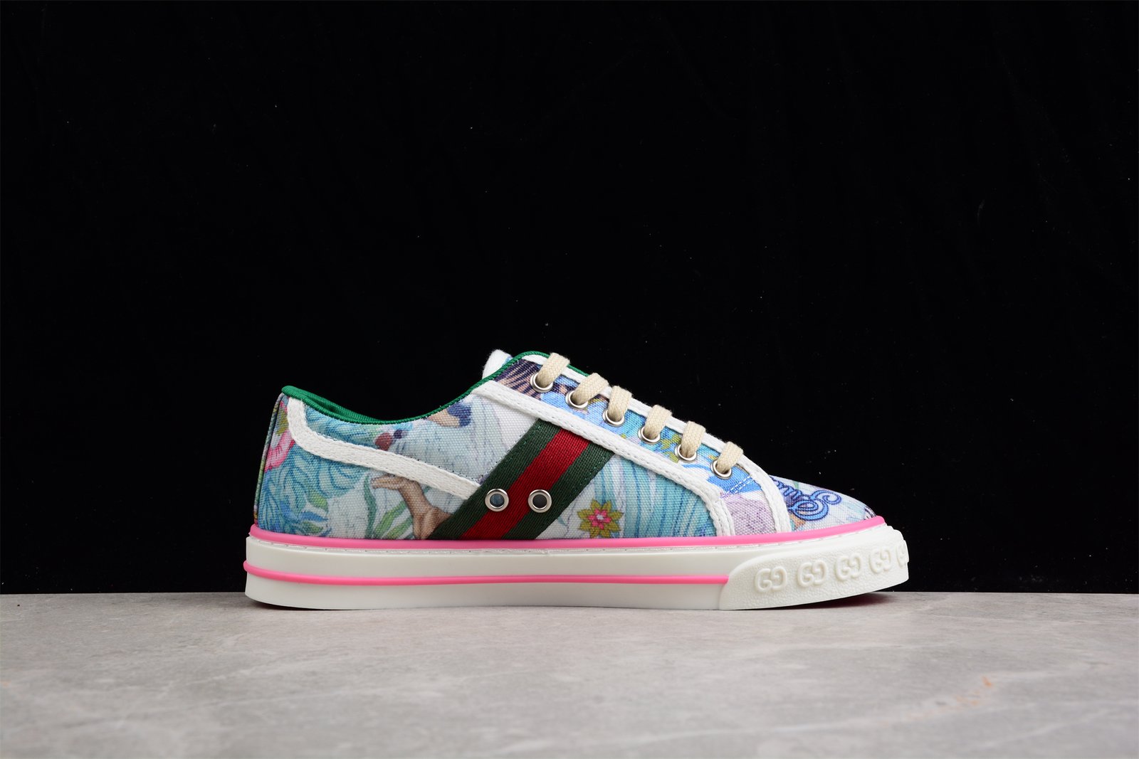 The Artistic Canvas Sneakers with Green and Red Stripe stand out with their creative design and vibrant colors. This unique sneaker features a high-quality canvas upper adorned with artistic patterns. offering a stylish and eye-catching look. The green and red stripe detailing adds a touch of classic charm. while the cushioned insole ensures comfort for extended wear. The lace-up closure provides a secure fit. and the rubber outsole enhances durability and traction. This pair blends artistic flair with everyday functionality. making it a perfect choice for those who love to stand out.