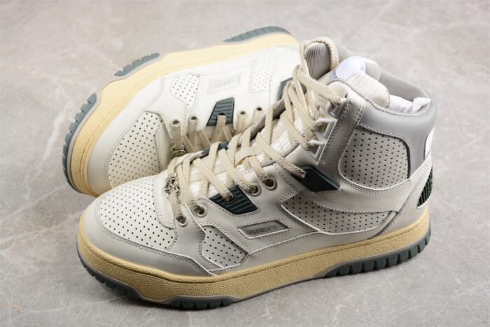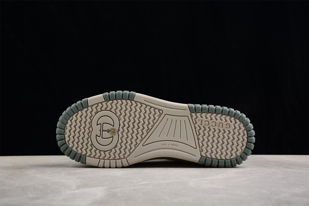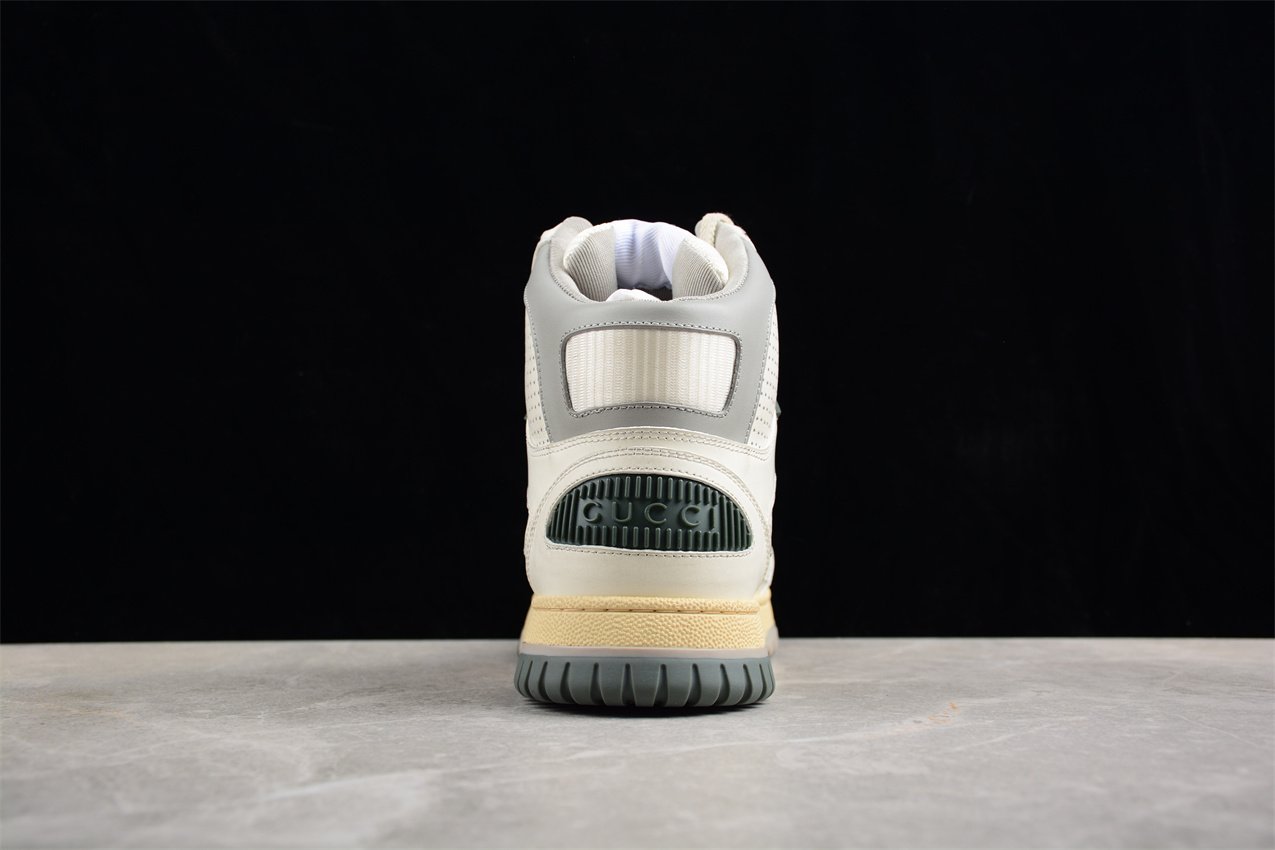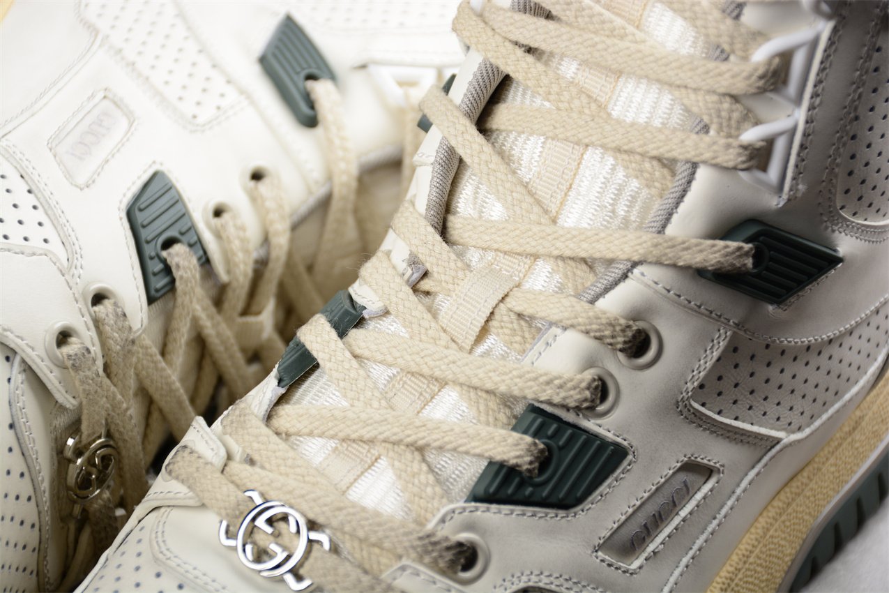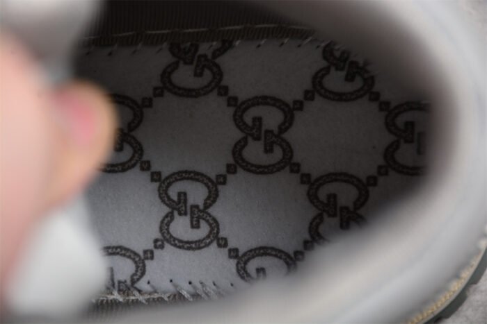 The Gucci Ultrapace R High-Top Sneakers stand out with their bold design and premium materials. This high-top sneaker features a mix of beige and grey fabric. offering a contemporary yet versatile look. The metallic accents and interlocking G logo add to its unique appeal. The cushioned insole ensures comfort. while the rubber outsole provides durability and grip. This pair blends cutting-edge style with modern functionality. making it a must-have for sneaker enthusiasts.