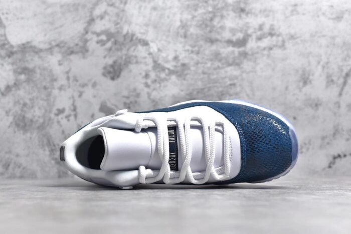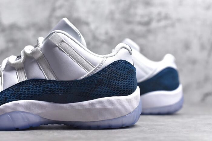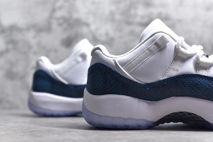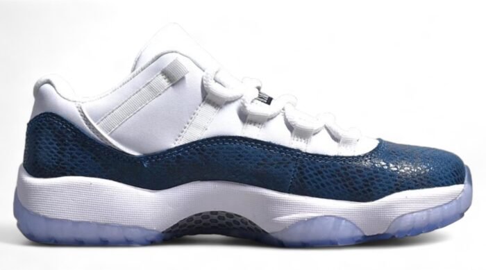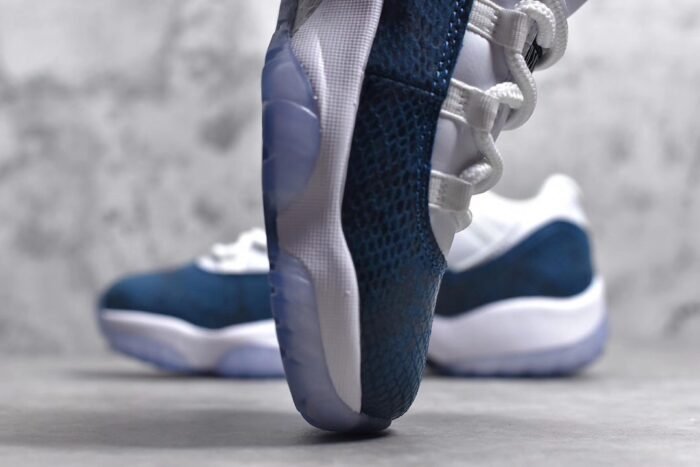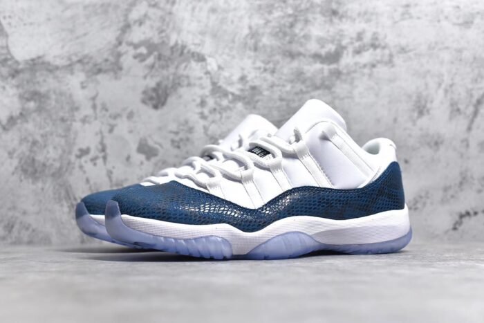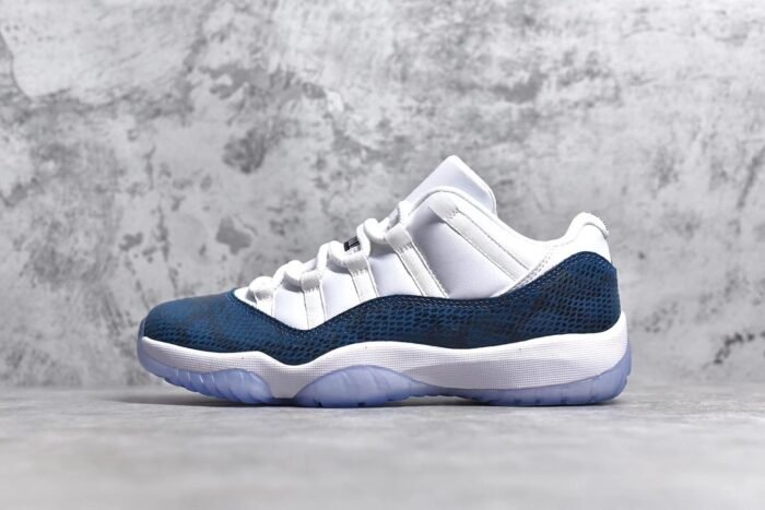 The Jordan 11 Retro AJ11-Navy Snakeskin is a refined take on the classic silhouette. featuring premium materials and a unique design. This iconic sneaker showcases a navy blue leather upper with snakeskin-textured overlays. offering a luxurious and sophisticated look. The patent leather mudguard adds a touch of elegance. while the padded collar and tongue ensure comfort. With a responsive Air-Sole unit in the heel. it provides cushioned support for all-day wear. The durable rubber outsole with a herringbone pattern offers traction and stability. Combining premium craftsmanship with modern aesthetics. this pair is a must-have for sneaker enthusiasts.