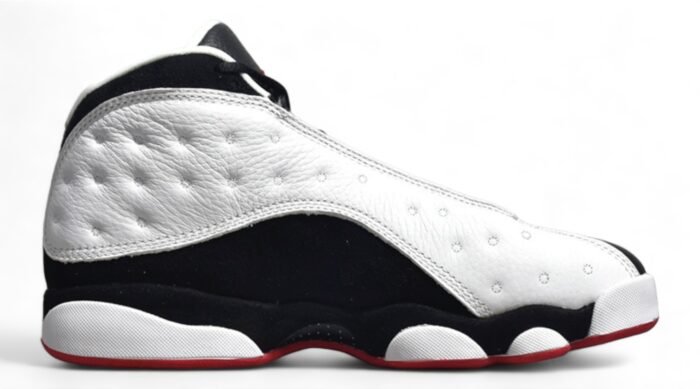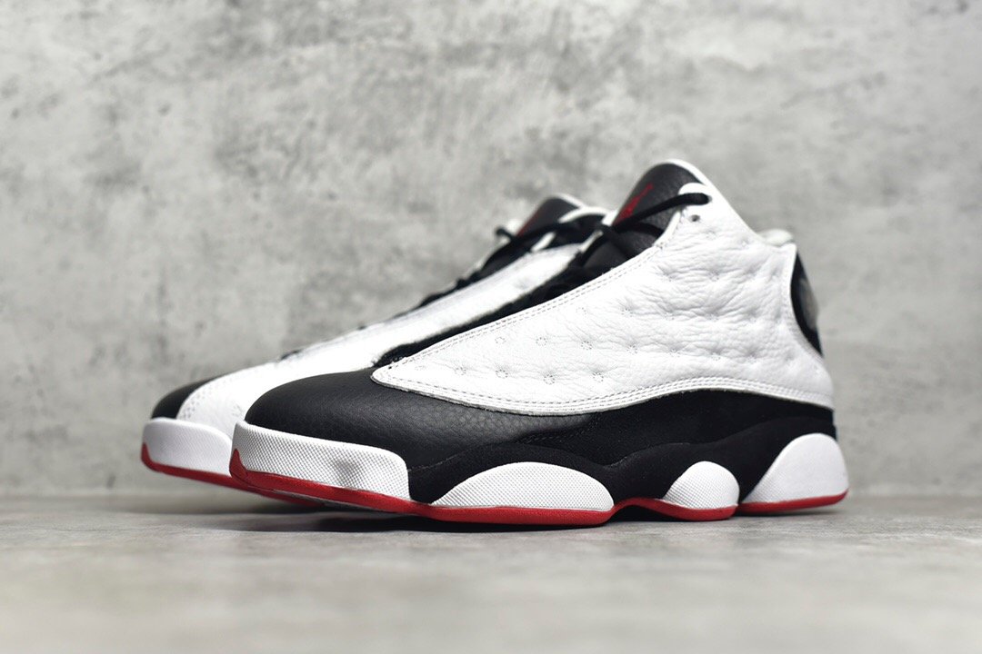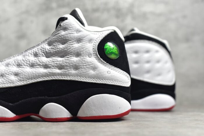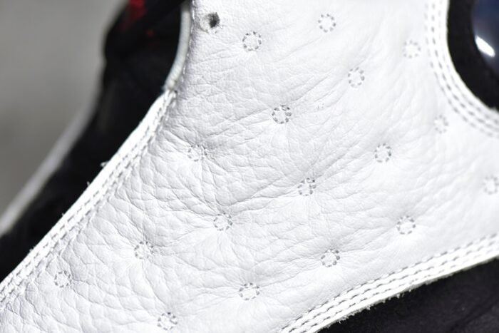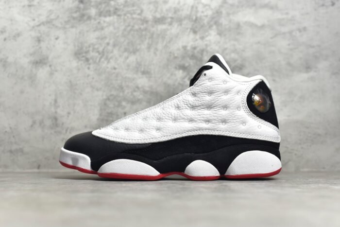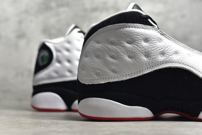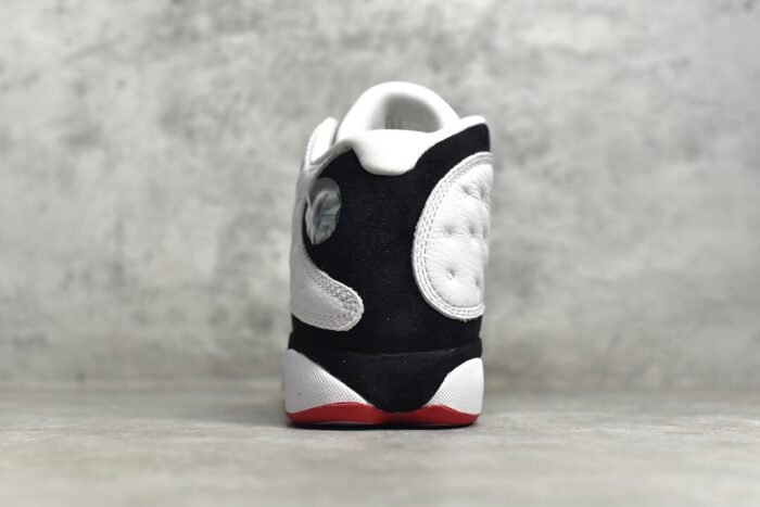 The Jordan 13 Retro AJ13-Panda stands out with its eye-catching colorway and premium materials. This iconic sneaker features a mix of black and white leather. offering a fresh yet classic look. The mesh overlays ensure breathability. while the padded collar and tongue provide extra comfort. The Zoom Air unit in the heel delivers responsive cushioning. perfect for all-day wear. Durable rubber outsole with a herringbone pattern enhances traction and grip. This pair blends heritage style with modern functionality. making it a must-have for sneaker enthusiasts.