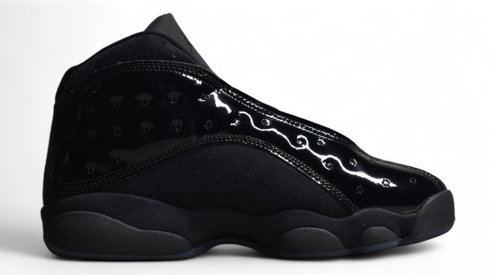 The Jordan 13 Retro Cap and Gown exudes sophistication with its monochromatic colorway and premium materials. This iconic sneaker features a full black upper with patent leather overlays. offering a sleek and luxurious look. The padded collar and tongue ensure comfort. while the mesh panels provide breathability. With a Zoom Air unit in the heel. it delivers responsive cushioning for all-day wear. The durable rubber outsole with a herringbone pattern offers excellent traction and grip. This pair seamlessly combines elegance with functionality. making it a must-have for sneaker enthusiasts.