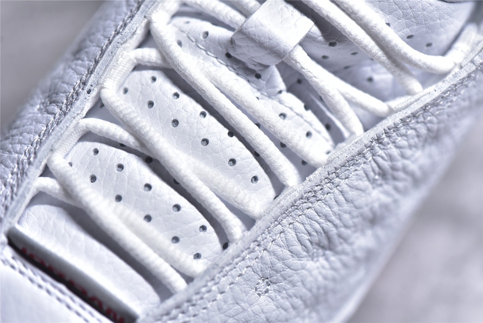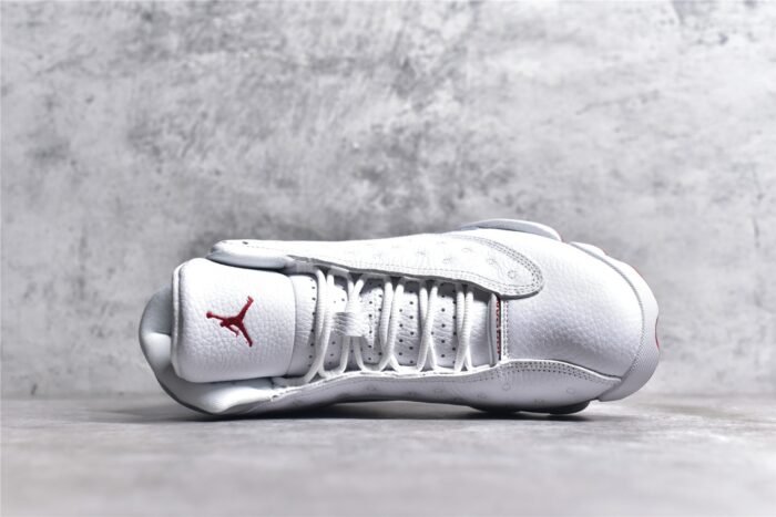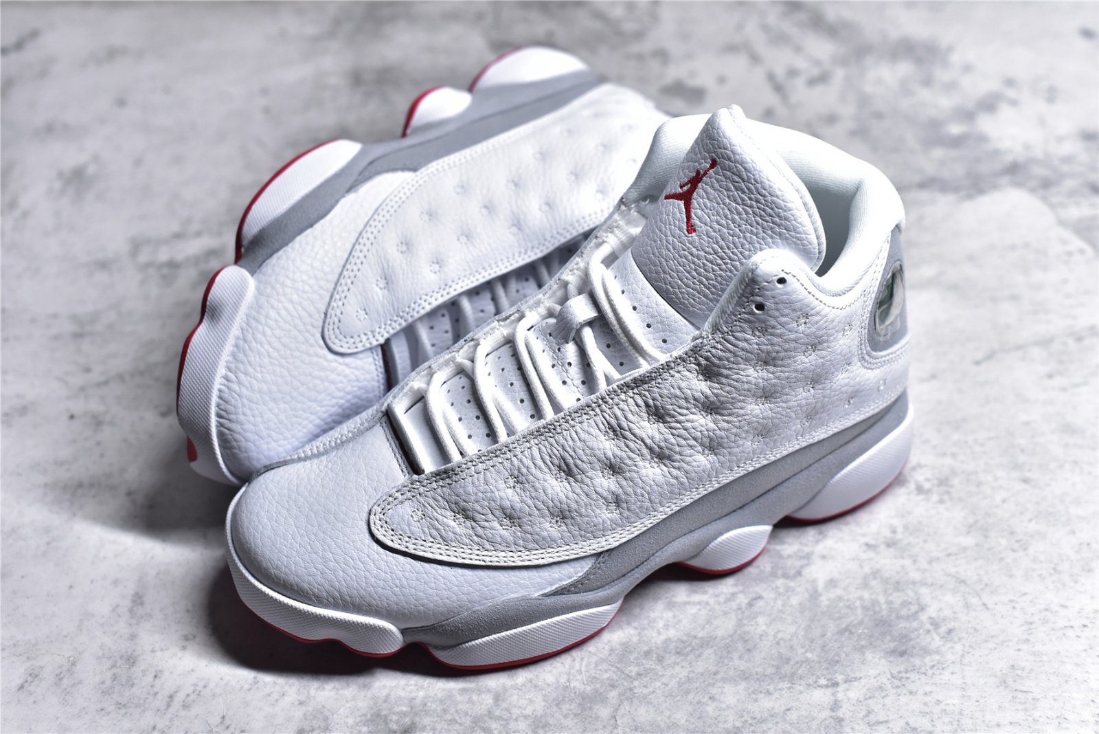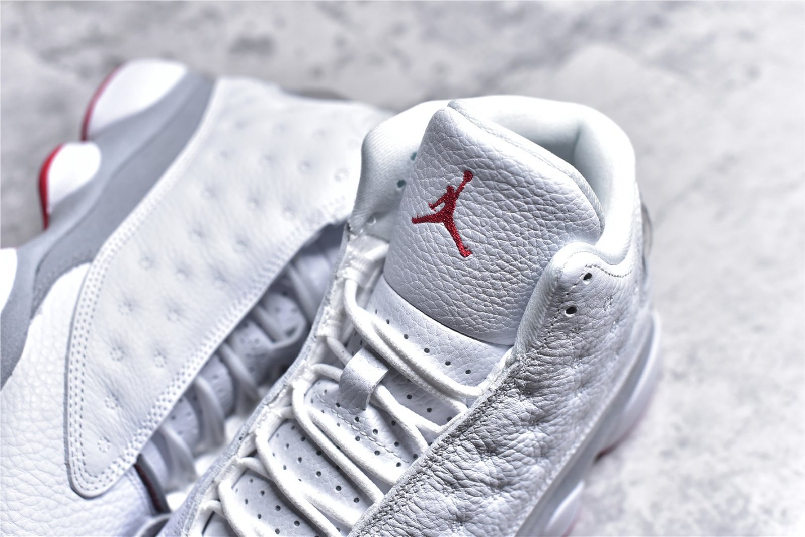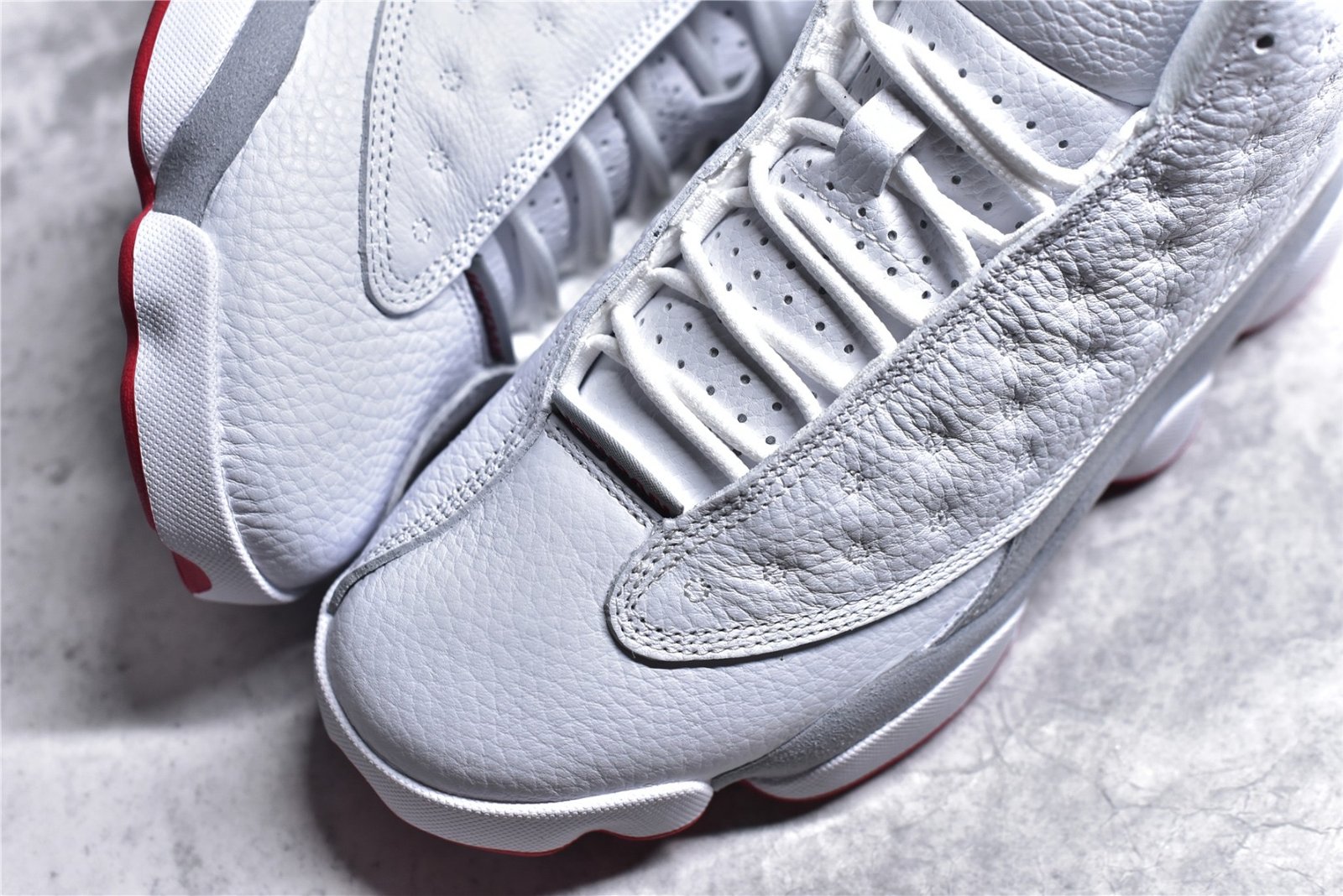 The Jordan 13 “Wolf Grey” introduces a sleek and modern colorway to the iconic silhouette. blending premium materials with contemporary design elements. Crafted with attention to detail. this sneaker features a clean and crisp grey suede upper. exuding sophistication and versatility. The textured leather overlays on the mudguard and heel provide depth and contrast to the design. while the black accents on the midsole. outsole. and Jumpman logo add definition and visual interest. Signature Jordan 13 elements such as the holographic “cat eye” jewel on the heel and unique midsole design maintain the heritage of the silhouette while offering superior comfort and cushioning. The durable rubber outsole with a modified herringbone pattern ensures reliable traction and grip on various surfaces. With its refined color palette and contemporary design. the Jordan 13 “Wolf Grey” is a stylish addition to any sneaker collection.