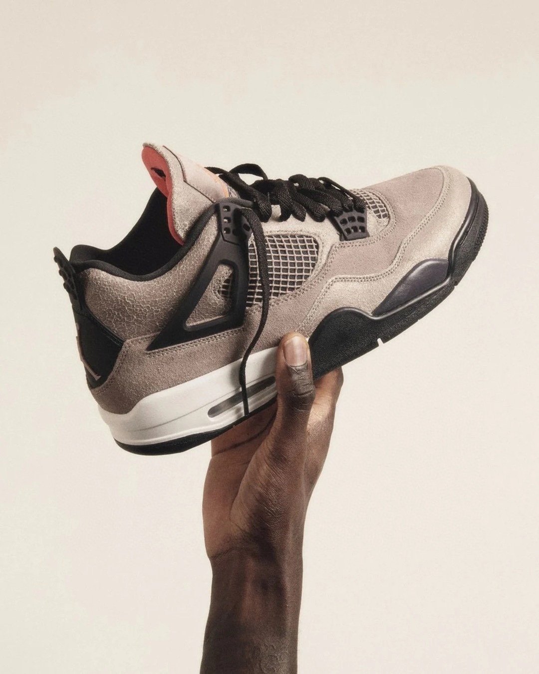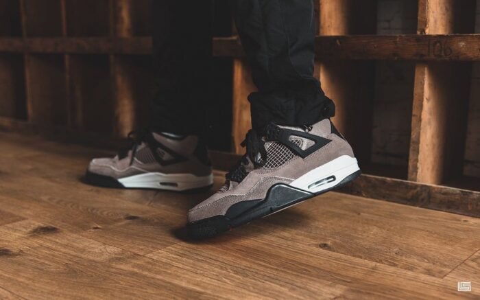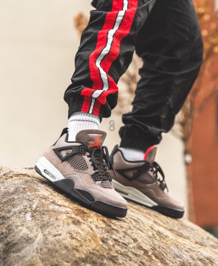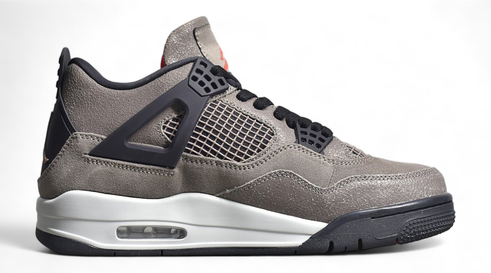The Jordan 4 Retro Taupe Haze offers a rugged and stylish look with its taupe and brown color scheme. Crafted from premium suede and textured materials. this sneaker ensures both durability and fashion.