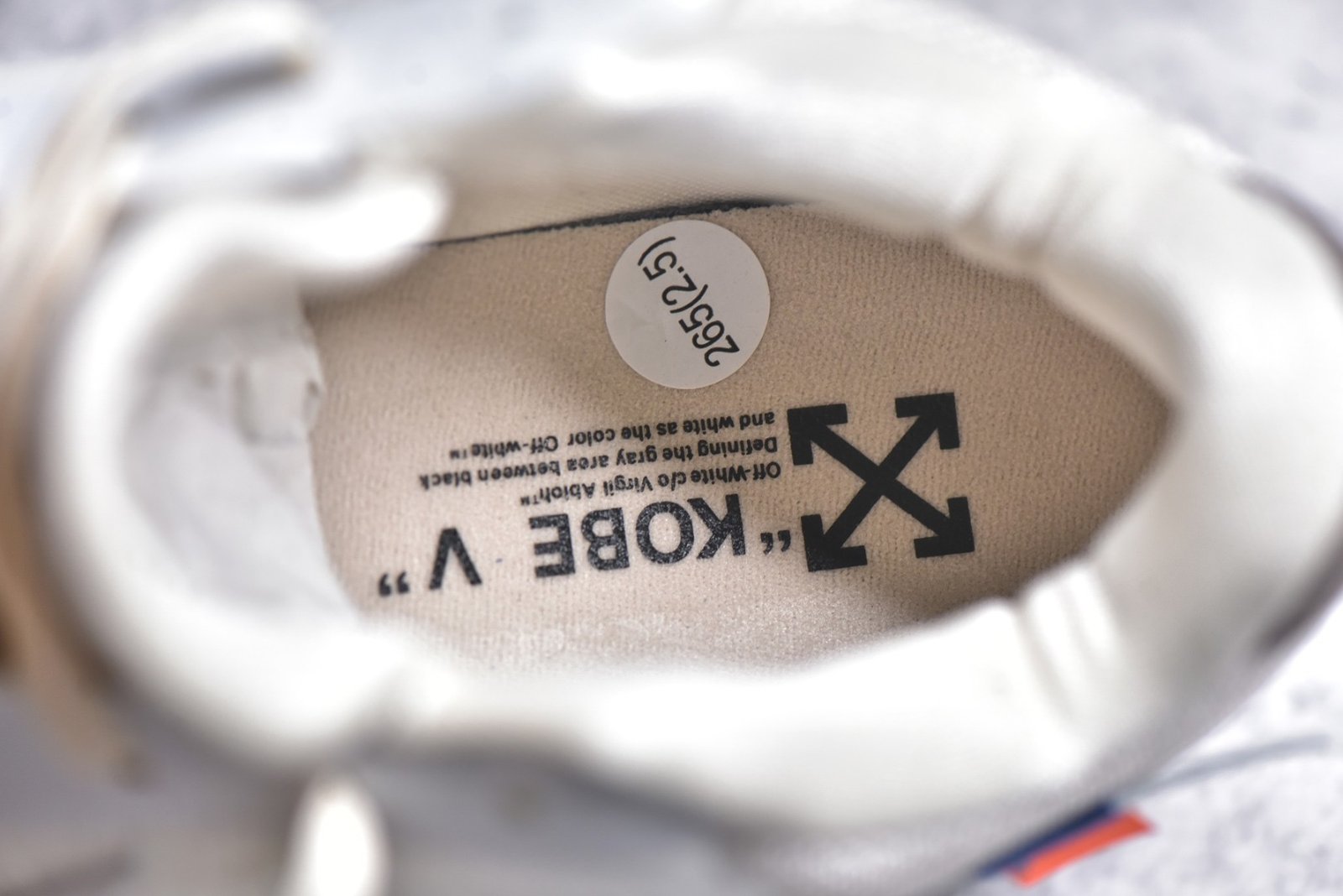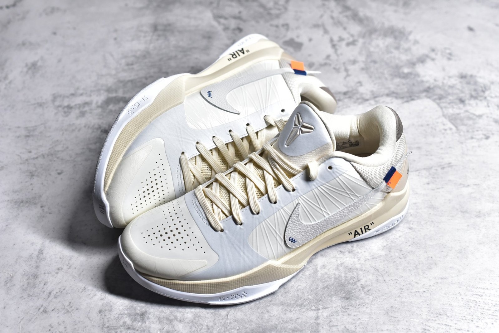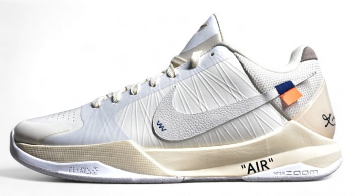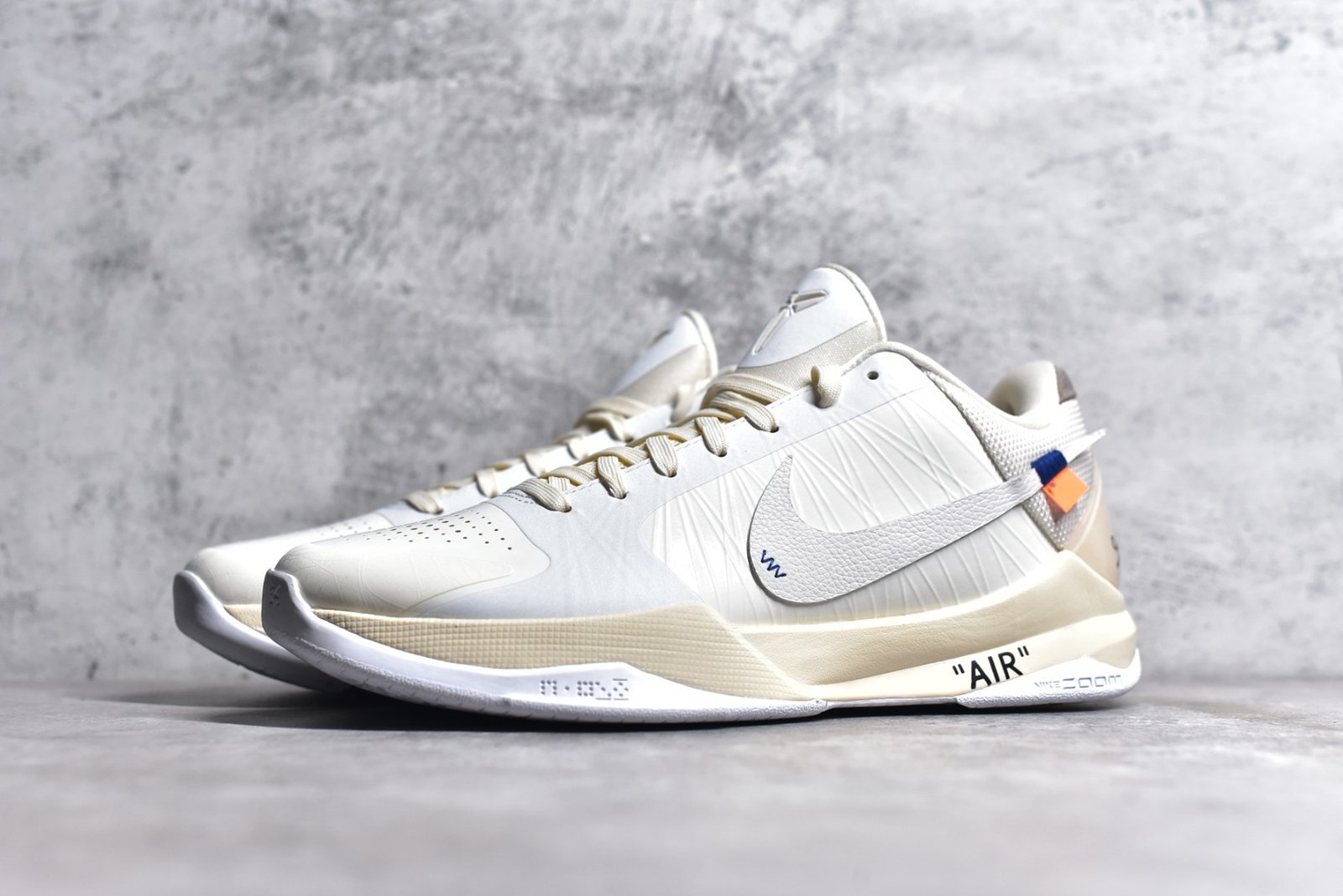 Step up your sneaker collection with the Kobe 5 Off-White x Nike Zoom “Sail.” a unique collaboration between Nike. Off-White. and basketball legend Kobe Bryant. This limited edition sneaker reimagines the classic Kobe 5 silhouette with Virgil Abloh’s iconic design elements.