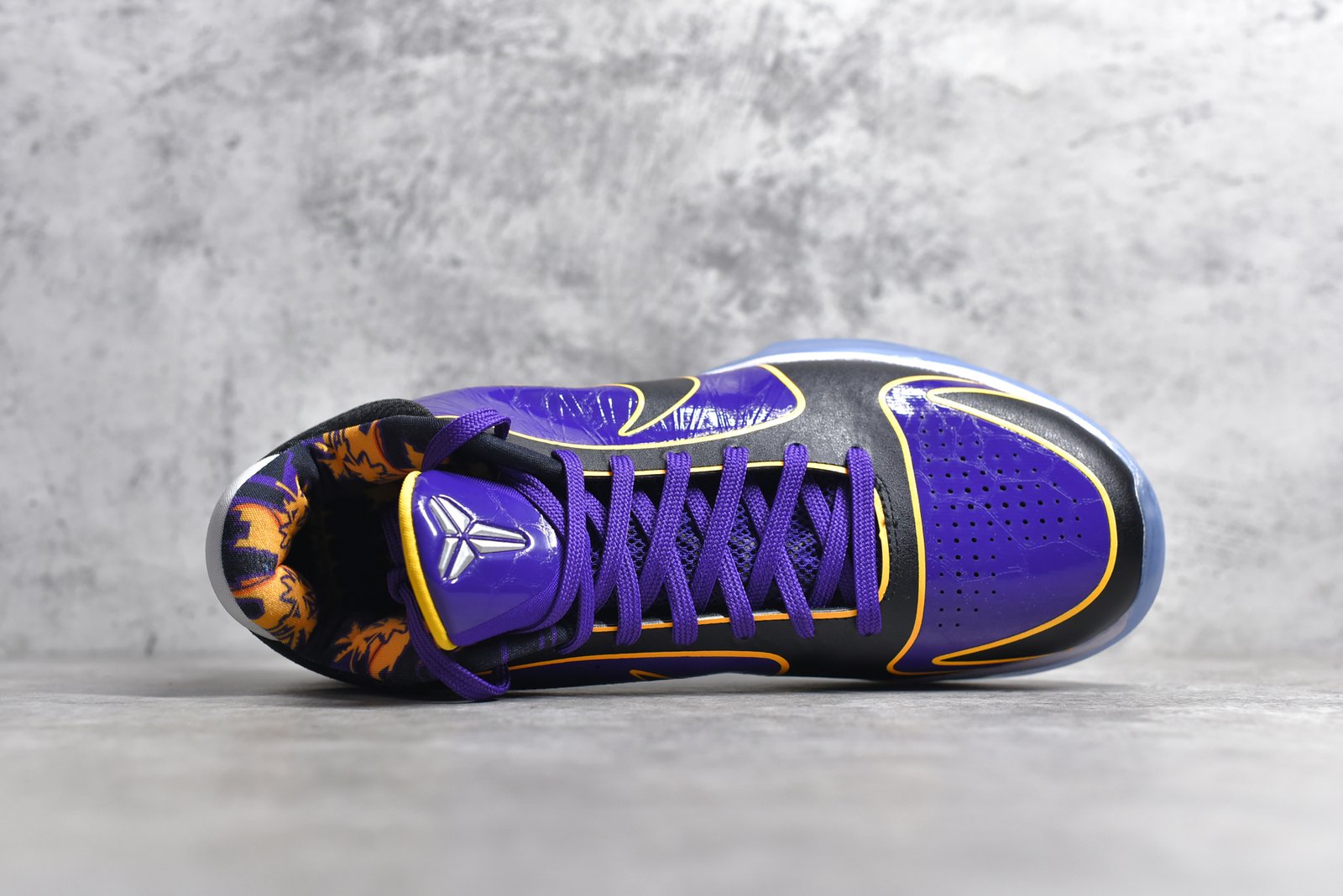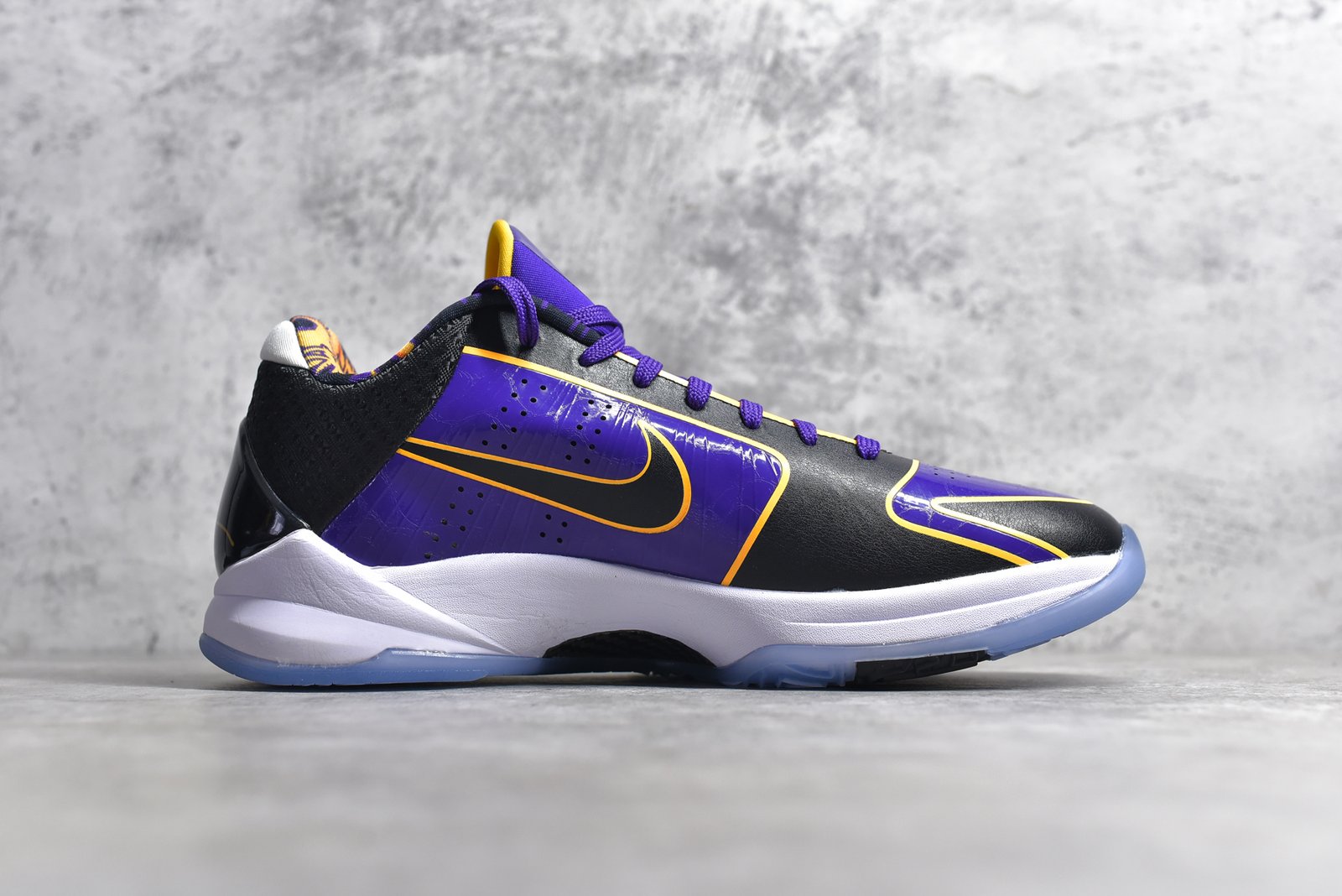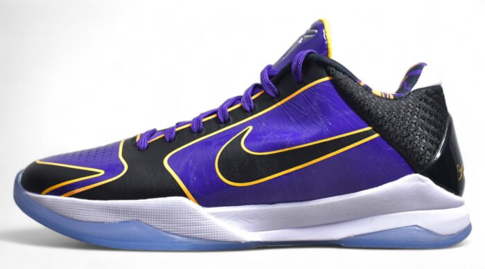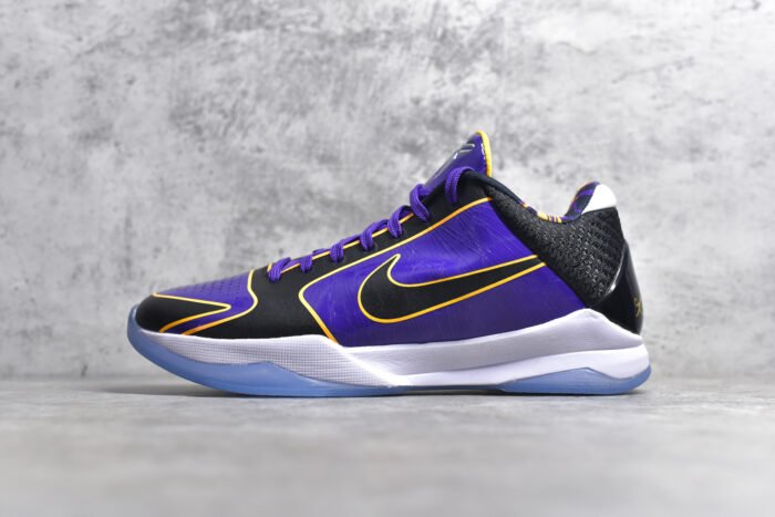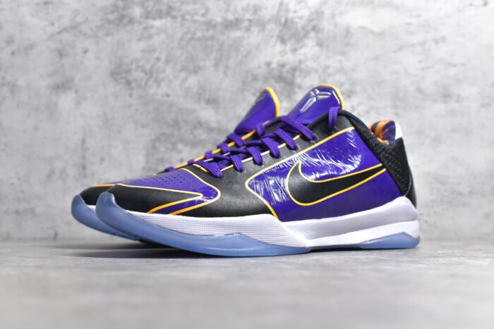 The Kobe 5 Protro Lakers celebrates Kobe Bryant’s legacy with its iconic colorway and premium materials. This striking sneaker features a mix of purple and gold accents. representing the Los Angeles Lakers. The lightweight synthetic upper ensures breathability and support. while the padded collar and tongue provide enhanced comfort. A responsive Zoom Air unit in the heel delivers cushioning for all-day wear. The durable rubber outsole with a herringbone pattern enhances traction and grip. This pair merges heritage style with high performance. making it a must-have for Lakers fans and sneaker enthusiasts.