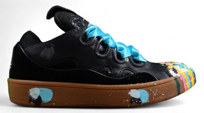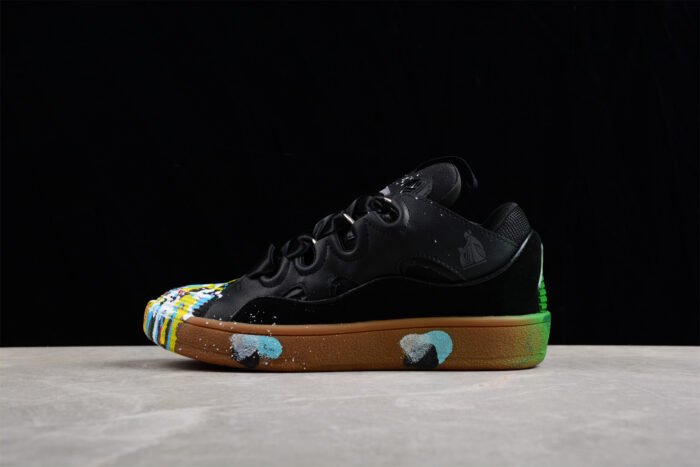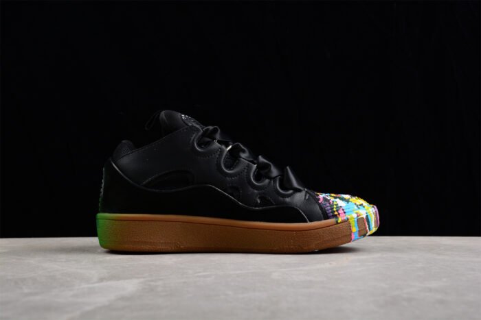 The Lanvin Curb Black Gum Shoes in Multicolor blend versatile design with modern flair. Featuring a sleek black upper with vibrant multicolor accents. these shoes offer a standout look. Crafted for durability. they include a comfortable padded collar and tongue. The gum rubber outsole ensures reliable traction. making them perfect for urban adventures and casual outings.