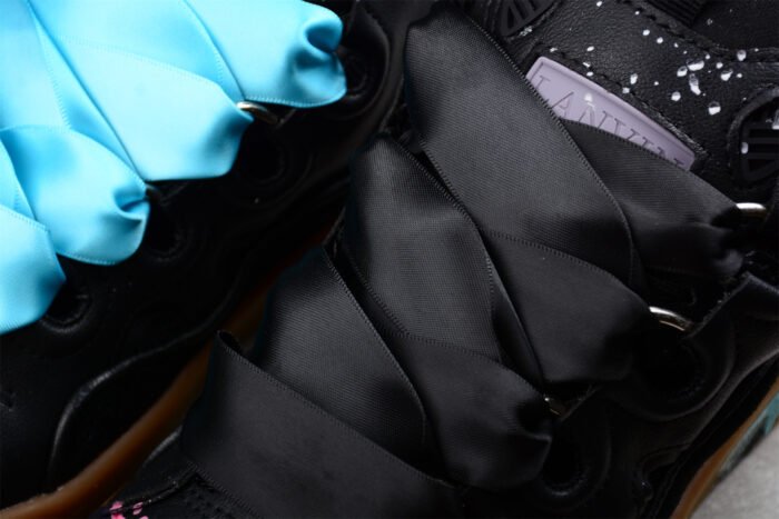 The Lanvin Curb Black Gum Shoes in Multicolor feature a sleek black upper with vibrant multicolor accents. padded collar for comfort. and gum rubber outsole for reliable traction. Ideal for stylish urban wear.
