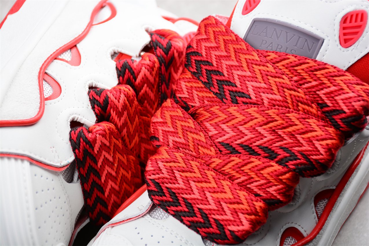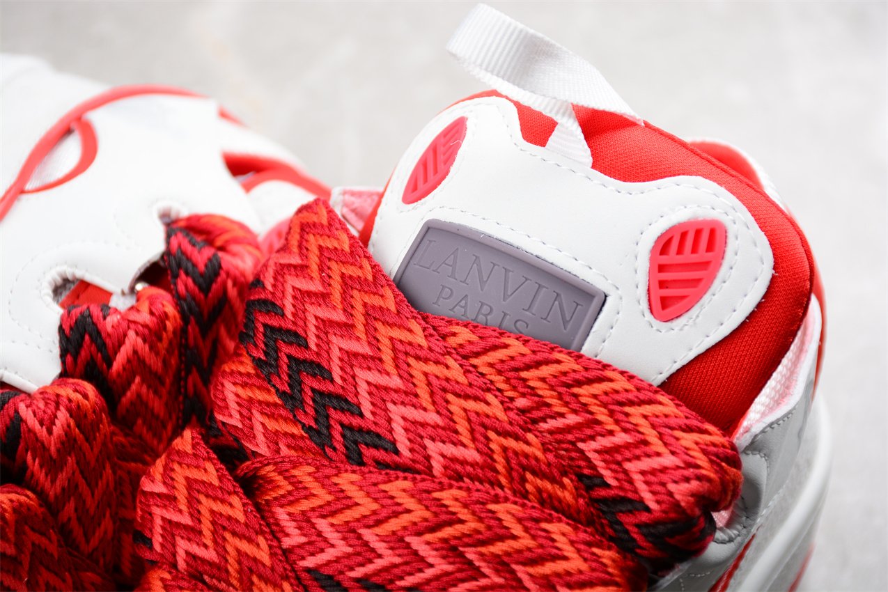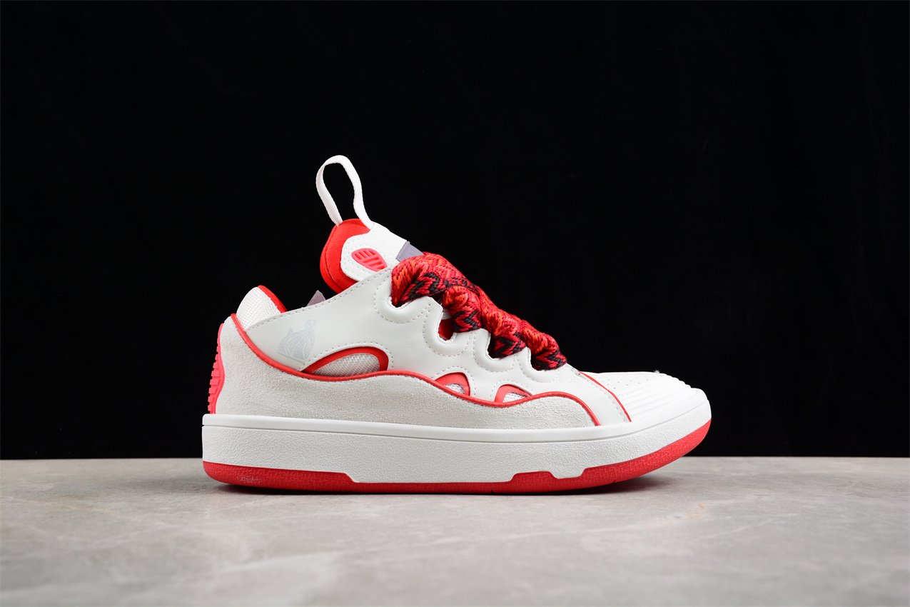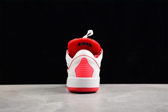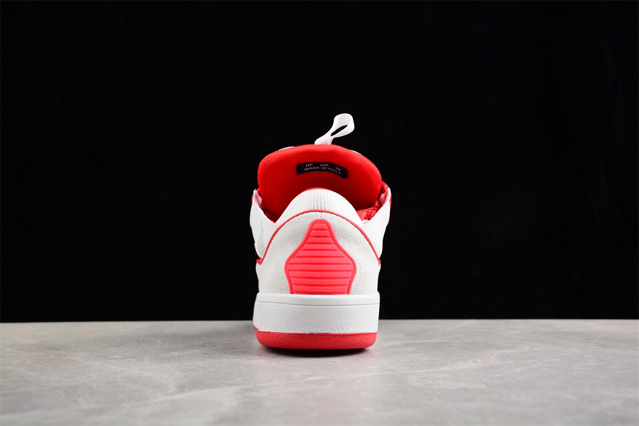 The Lanvin Curb Sneaker in Red/White offers bold style and comfort. with a vibrant red upper. white accents. padded collar. and durable rubber outsole for excellent traction.