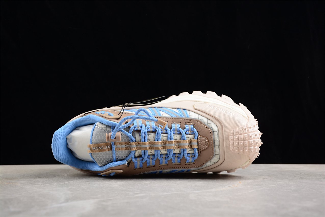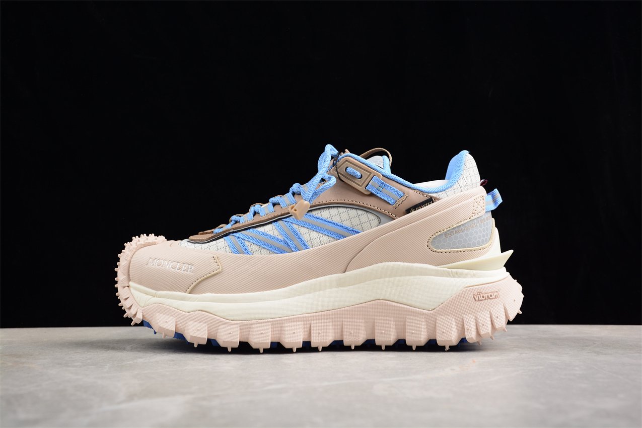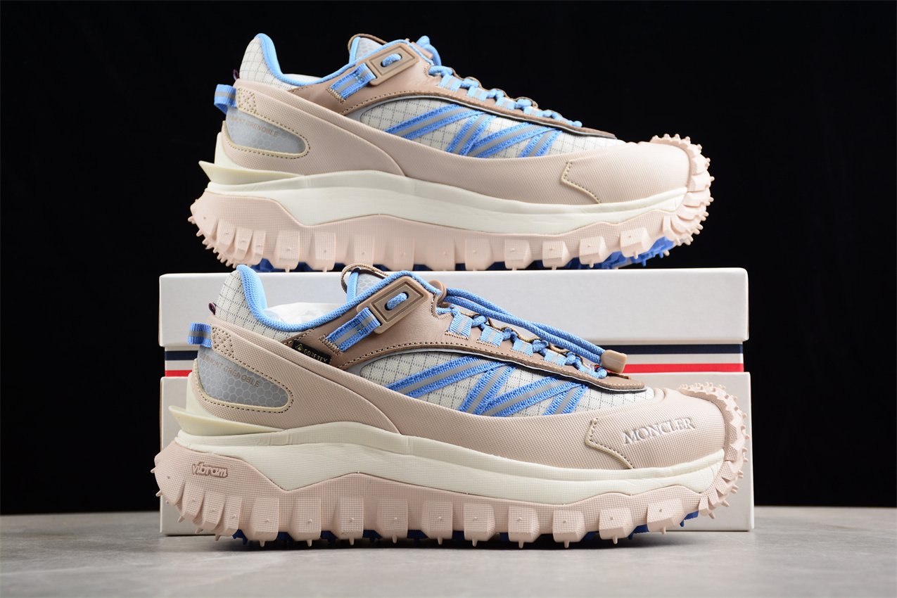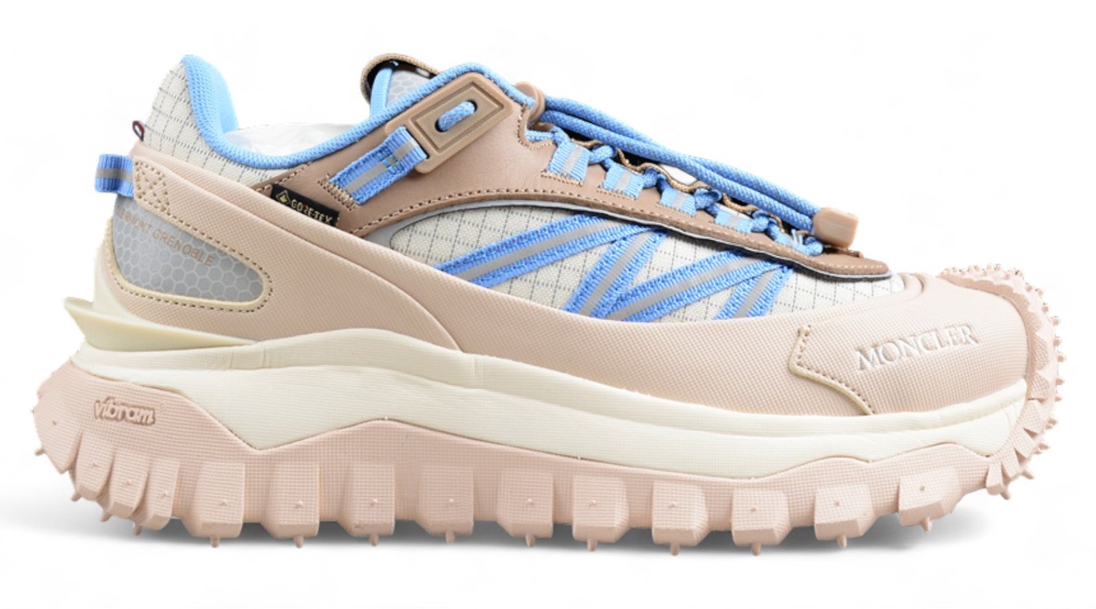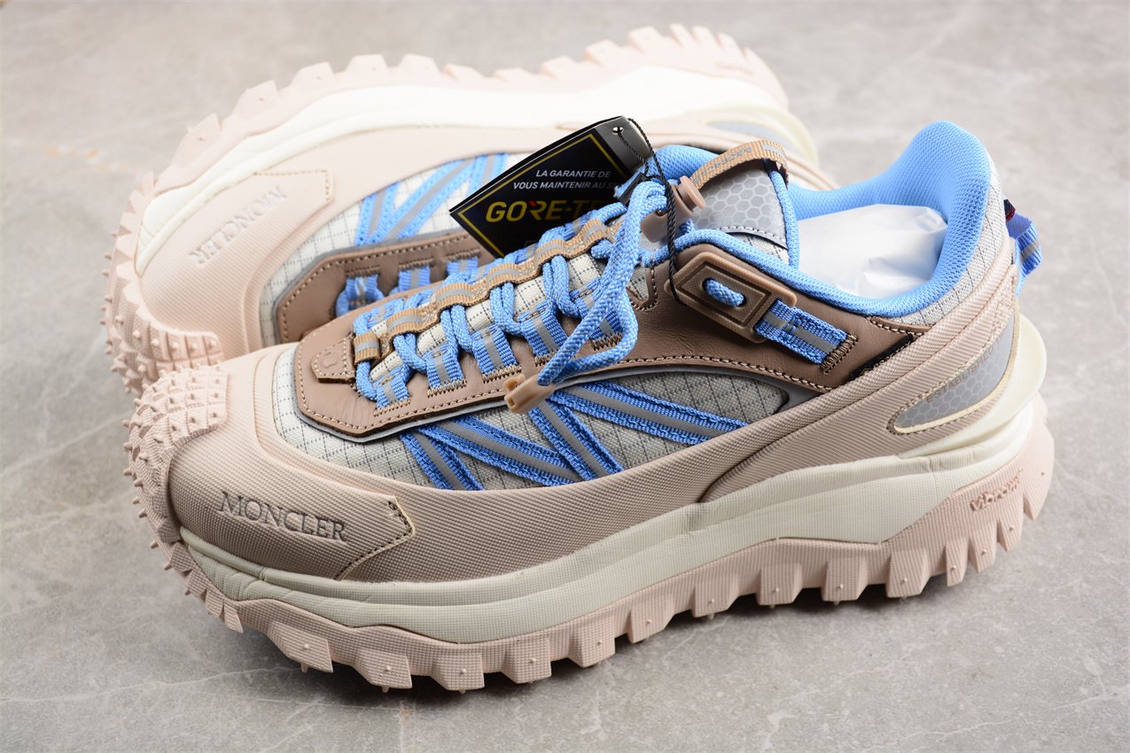 The Moncler Trailgrip GTX in Beige and Blue stands out with its striking colorway and durable design. These stylish sneakers feature a combination of beige and blue. offering a unique yet functional look. The Gore-Tex upper ensures waterproof protection. while the cushioned insole provides all-day comfort. The Vibram sole delivers excellent traction and stability. perfect for various terrains. Reinforced toe and heel areas enhance durability. making them ideal for outdoor adventures. This pair blends innovative technology with modern style. making it a must-have for active individuals.