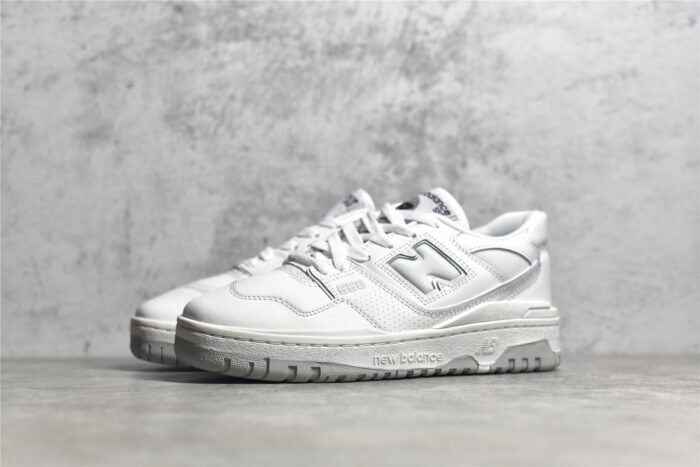 The NB BB550 004 is a stylish and versatile sneaker. It features a combination of white leather and black accents for a sleek look. The perforated leather upper enhances breathability. while the padded collar and tongue ensure comfort. The EVA midsole offers lightweight cushioning. and the durable rubber outsole provides traction and grip. This pair is perfect for everyday wear and adds a touch of classic style to any outfit.