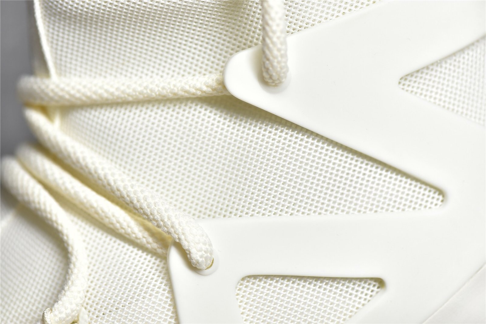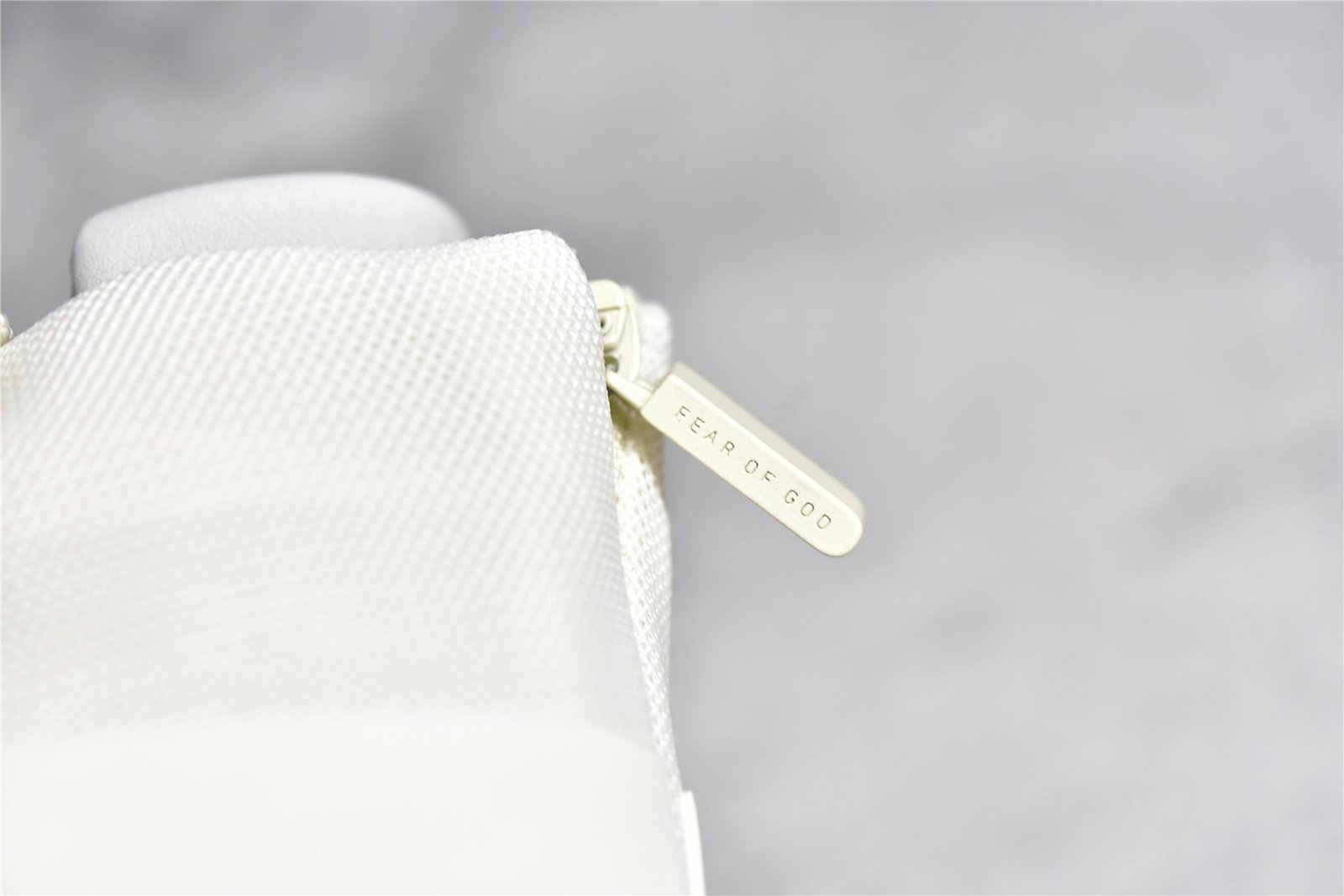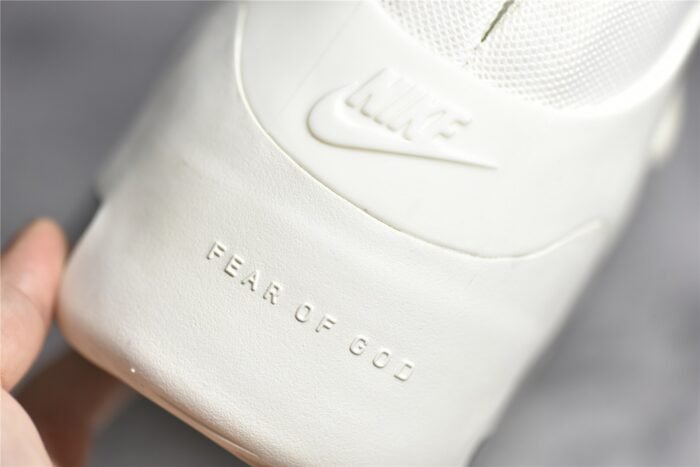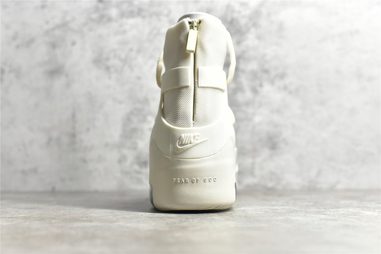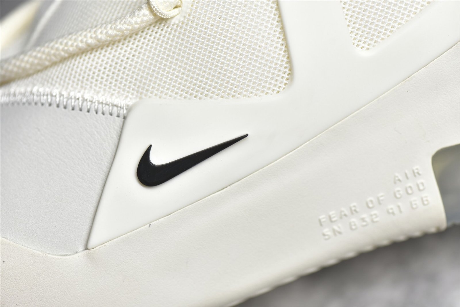 The Nike Air Fear Of God 1 Sail Black AR4237-100 combines luxury and performance with a sleek. high-top silhouette designed by Jerry Lorenzo. Featuring a premium sail-colored leather upper with contrasting black accents. these sneakers exude a sophisticated yet sporty aesthetic. The adjustable ankle strap provides a secure fit. while the padded collar and tongue offer enhanced comfort. A visible double-stacked Zoom Air unit in the heel delivers responsive cushioning. ideal for all-day wear. Finished with a durable rubber outsole for traction and grip. these sneakers seamlessly blend fashion-forward design with athletic functionality.