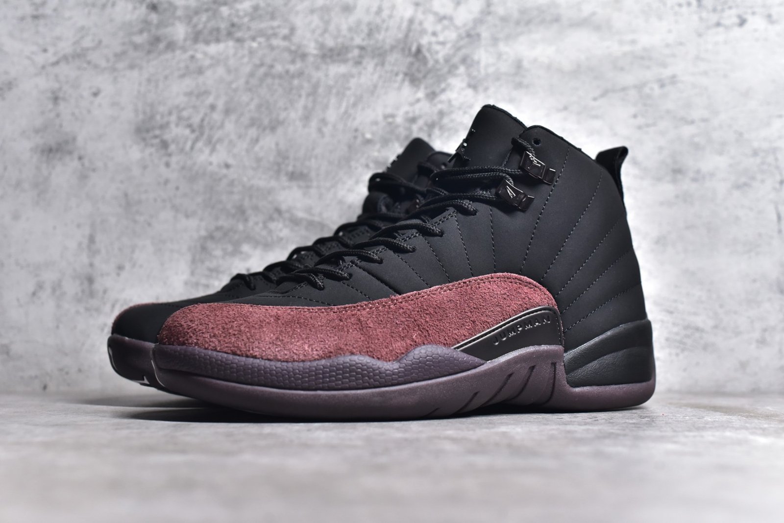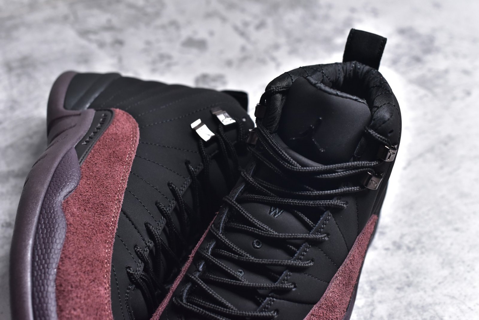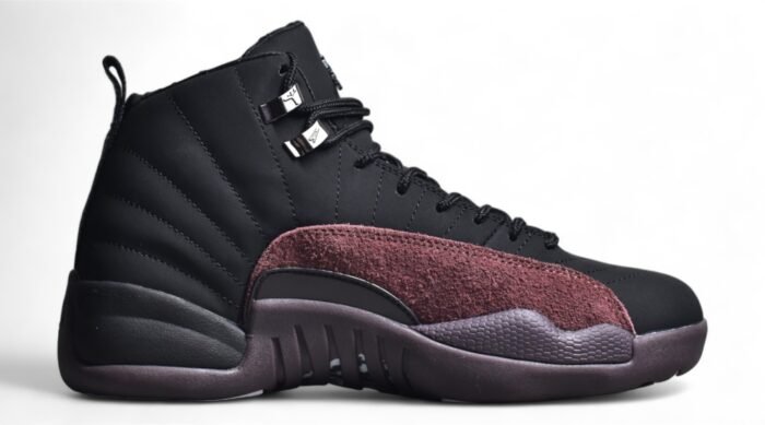 The Nike Air Jordan 12 Retro x A Ma Maniere Black presents a fusion of iconic design and contemporary style. crafted with premium materials. This exclusive sneaker features a sleek all-black colorway. exuding sophistication and versatility. The leather upper offers durability and a luxurious feel. while the padded collar and tongue ensure all-day comfort. Equipped with a full-length Air unit. it provides responsive cushioning with each step. Mesh panels enhance breathability. and the durable rubber outsole with a herringbone pattern delivers traction and stability. Elevate your sneaker collection with this limited-edition collaboration. blending heritage design with modern aesthetics.