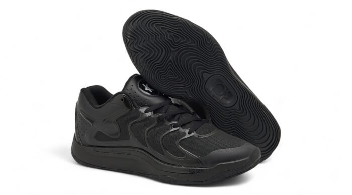 The Nike KD 17 x Blackout stands out with its all-black colorway and high-performance materials. This sleek sneaker features a mix of black mesh and subtle accents. offering a bold yet understated look. The Flyknit upper ensures flexibility. while the padded collar and tongue provide extra comfort. The Zoom Air unit in the forefoot delivers responsive cushioning. perfect for high-energy movements. Durable rubber outsole with a multidirectional pattern enhances traction and grip. This pair blends cutting-edge design with top-tier functionality. making it a must-have for basketball enthusiasts.