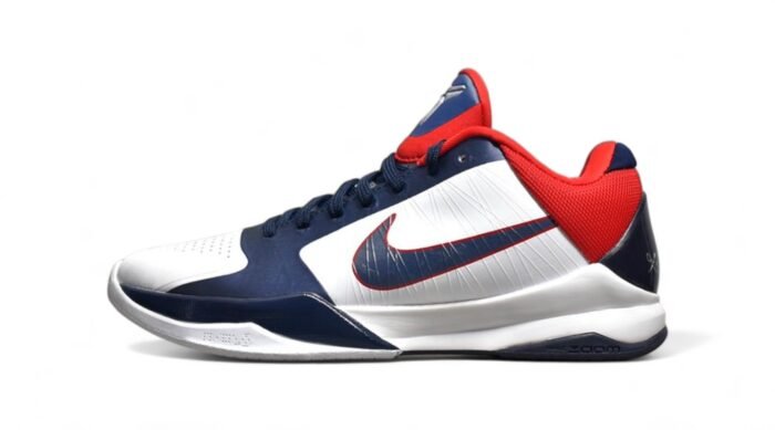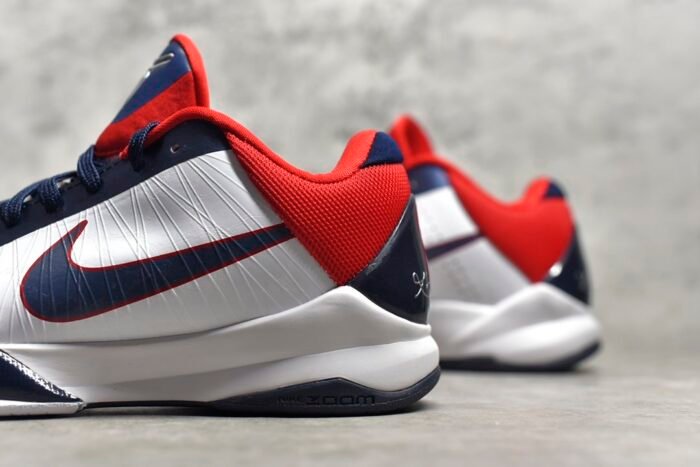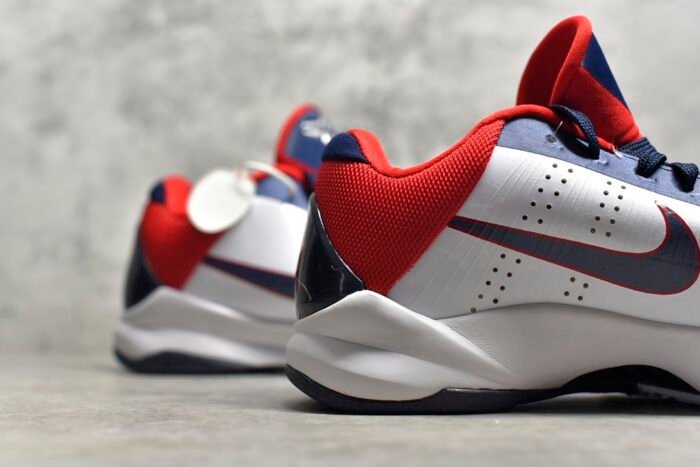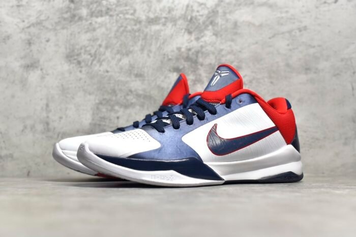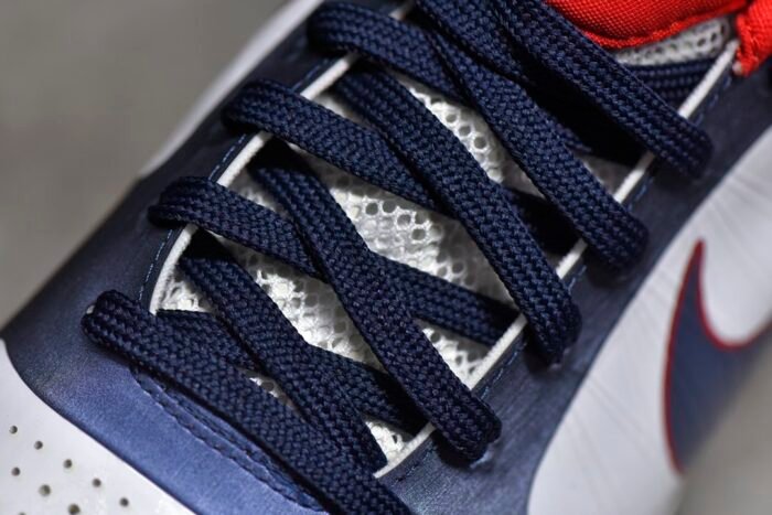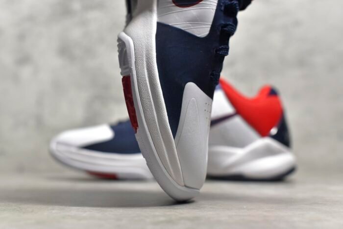 The Nike Kobe 6 Protro ‘Team USA Away’ celebrates Kobe Bryant’s contributions to the USA basketball team with a patriotic and performance-driven design. This sneaker typically features: