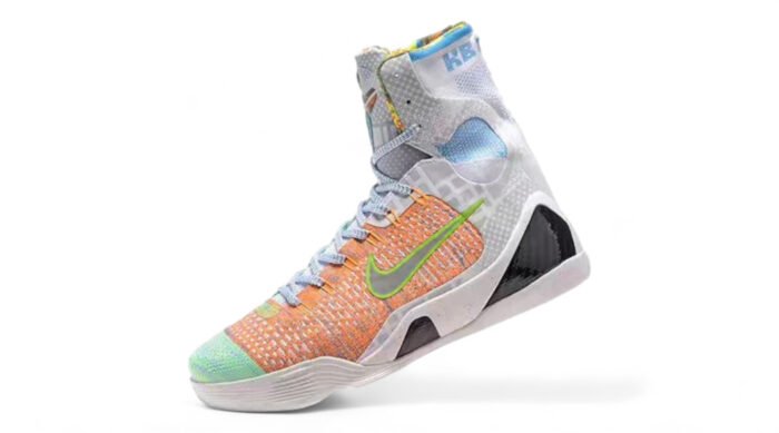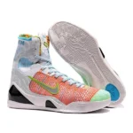 The Nike Kobe 9 Elite “What The Kobe” is a standout sneaker that celebrates Kobe Bryant’s illustrious career by blending various elements from his previous signature shoes into one eclectic design. Known for its bold and eye-catching appearance. this special edition sneaker features a mix of colors. patterns. and materials from past Kobe models. creating a unique and dynamic aesthetic. The Flyknit upper provides lightweight support and breathability. while Flywire cables ensure dynamic lockdown and stability during gameplay. Responsive Lunarlon foam cushioning. combined with Zoom Air units in the heel and forefoot. delivers plush comfort and impact protection. The outsole features a multidirectional pattern for exceptional traction on the court. making it a favorite among Kobe fans and collectors alike.