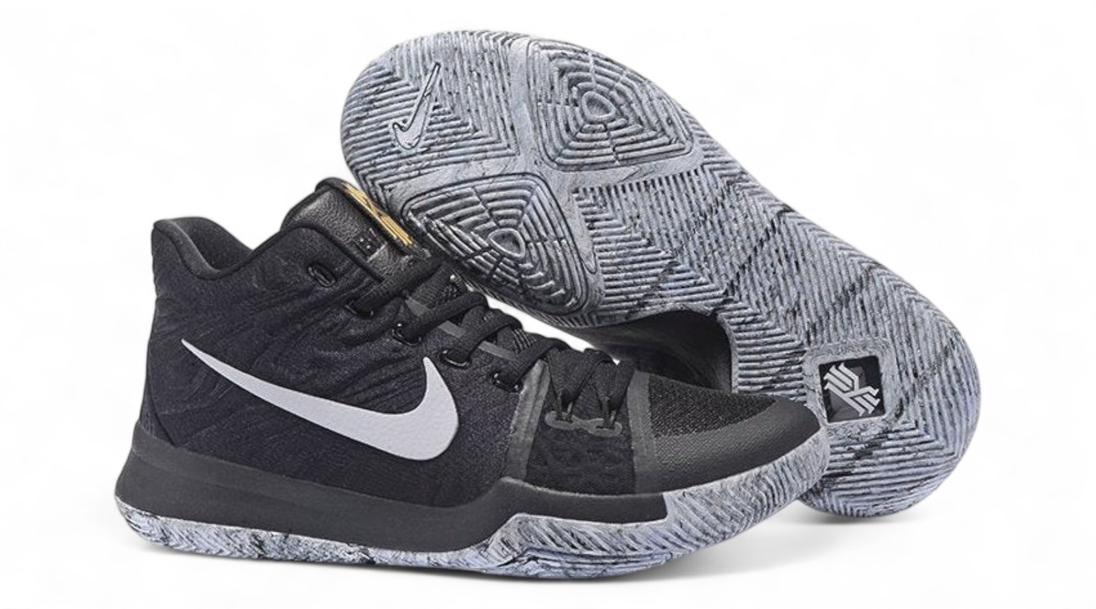 The NIKE KYRIE 3 x BHM celebrates Black History Month with a unique design. Featuring a black and gold color scheme. this player-exclusive sneaker embodies cultural significance and style. Crafted from premium materials. it ensures durability and comfort. Mesh panels enhance breathability. while the padded collar and tongue offer added support. The responsive Zoom Air unit in the heel provides cushioned comfort for dynamic play. A durable rubber outsole with a multidirectional traction pattern delivers exceptional grip on the court. Perfect for athletes and collectors alike. this shoe pays tribute to diversity and excellence.