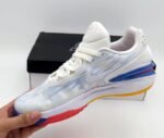 The Nike Zoom G.T. Cut 2 x Summit White Blue impresses with its sleek design and cutting-edge technology. This stylish sneaker features a mix of lightweight mesh and durable synthetic materials for optimal performance and comfort. The full-length Zoom Air unit ensures responsive cushioning. while the flexible outsole allows for quick movements. The padded collar and tongue add extra comfort. and the Summit White Blue colorway offers a fresh. modern look. A durable rubber outsole with a herringbone pattern enhances traction. making this shoe perfect for intense play.