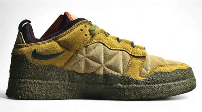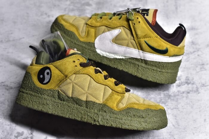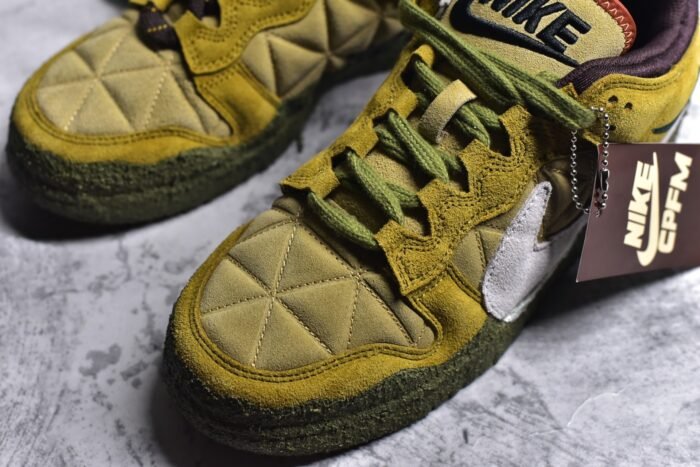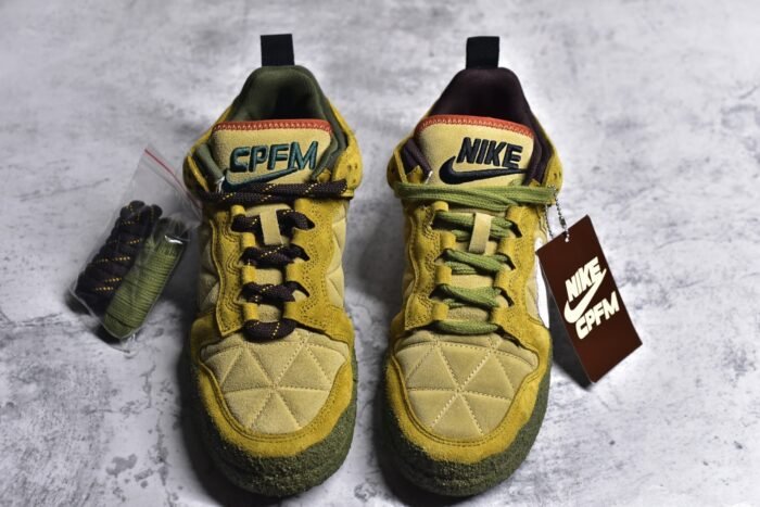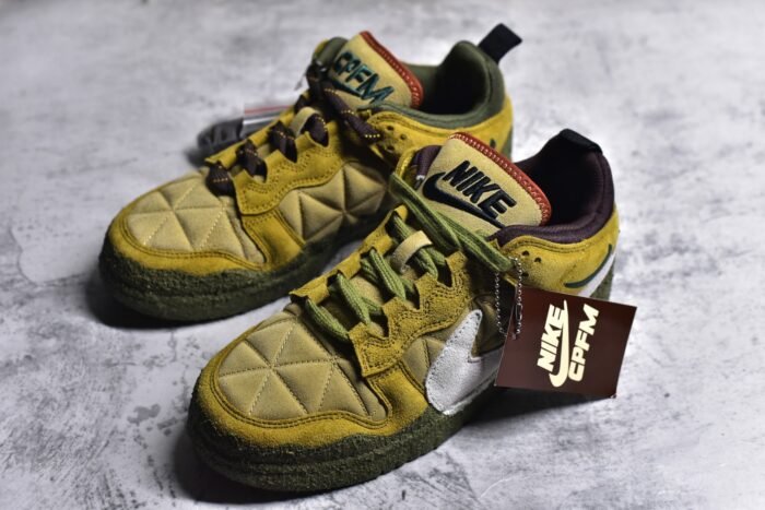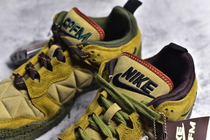 The NK CPFM Flea 1 Cactus Plant Flea Market Desert Moss DM0430-700 is a collaboration that combines unique design elements with comfort and style. These sneakers likely feature a design influenced by Cactus Plant Flea Market’s creative and playful aesthetic. The upper may incorporate a mix of materials such as suede. leather. or textile. in a desert moss colorway that reflects natural tones. Special details such as exaggerated branding. unique textures. or unconventional lacing systems may add to the shoe’s distinctive look. The padded collar and tongue ensure comfort. while the perforated toe box enhances breathability. A responsive cushioning midsole. possibly with Zoom Air technology. provides comfort for all-day wear. and the durable rubber outsole offers excellent traction.