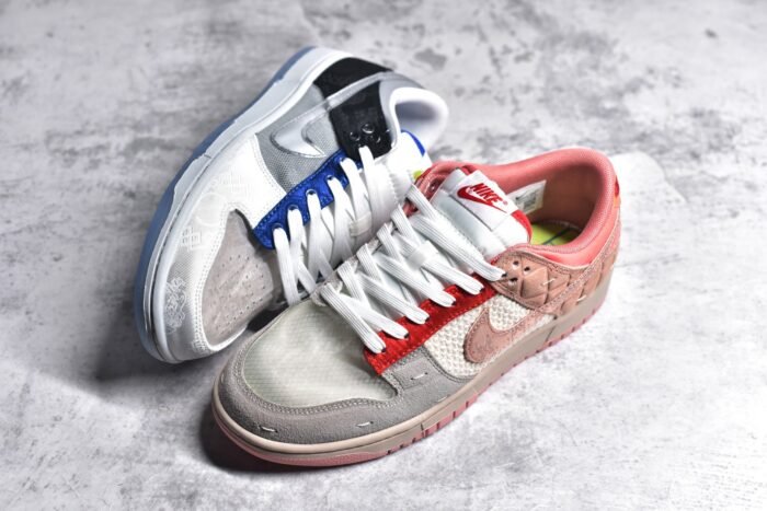 The NK SB Dunk Low SP What The CLOT FN0316-999 combines diverse elements from past CLOT collaborations into a creative and stylish sneaker. ideal for collectors and sneaker enthusiasts looking for something unique.