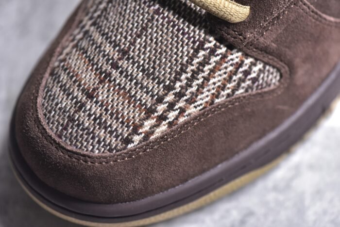 The NK SB Dunk Low Tweed 304292-223 blends classic style with a textured twist. These sneakers feature a mix of tweed fabric and suede or leather overlays. offering a sophisticated and unique look. The design includes earthy tones or subtle patterns that reflect the traditional tweed material. The padded collar and tongue ensure comfort. while the perforated toe box enhances breathability. A Zoom Air unit in the heel provides responsive cushioning for all-day wear. and the durable rubber outsole offers reliable traction and grip.