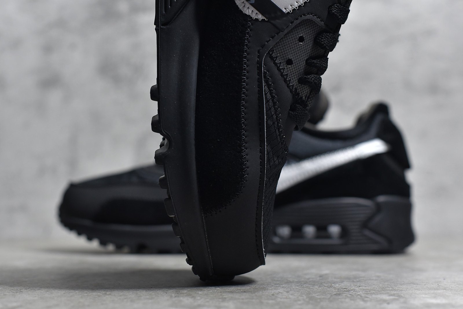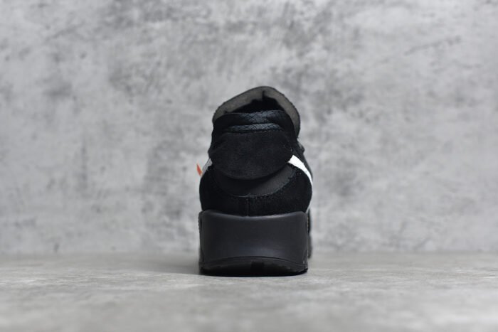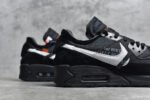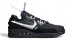 The OW x Air Max 90 2.0 – Black continues Virgil Abloh’s collaboration with Nike. combining his Off-White aesthetic with the timeless Air Max 90 silhouette. This sneaker features a sleek all-black colorway that exudes sophistication and versatility. Crafted from premium materials including leather and mesh. it offers durability and breathability. The design is characterized by deconstructed elements such as exposed stitching and Off-White branding. adding a contemporary edge. A foam midsole with a visible Air-Sole unit provides responsive cushioning for all-day comfort. Finished with a rugged rubber outsole for traction and durability. this pair is a statement piece for sneaker enthusiasts seeking style and substance.