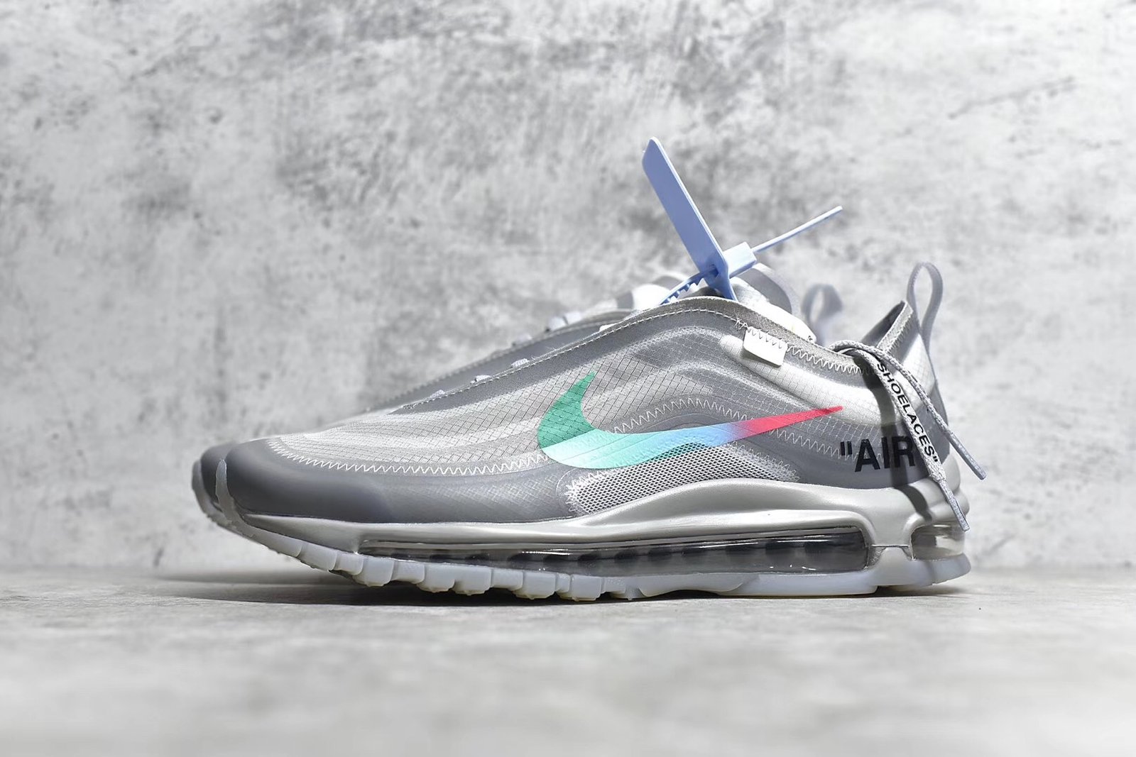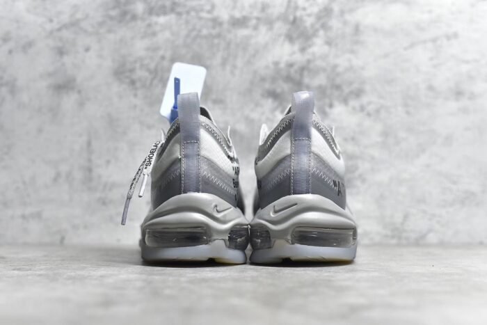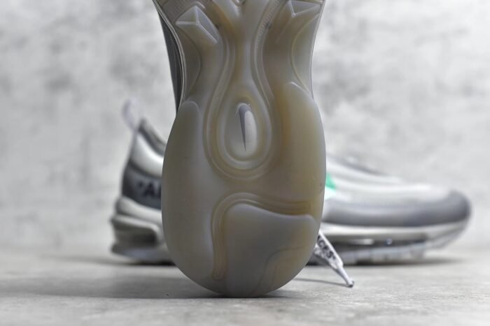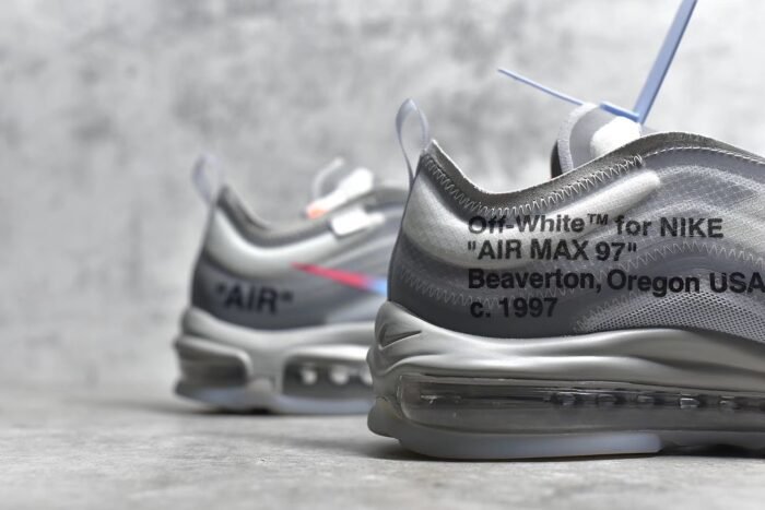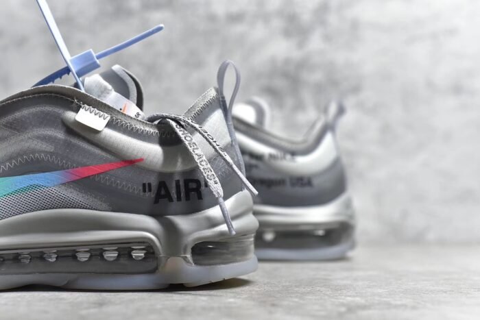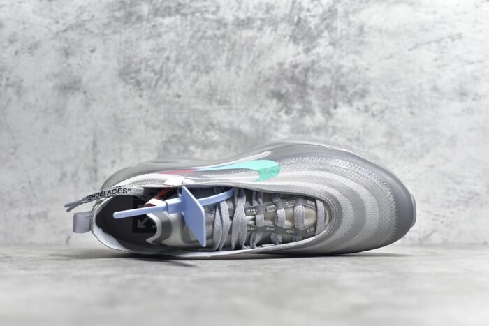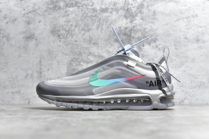 The OW x Air Max 97 Menta is a coveted collaboration that blends Virgil Abloh’s Off-White design ethos with the iconic Air Max 97 silhouette. This sneaker features a unique and eye-catching color scheme. combining shades of off-white. grey. and mint green (Menta). Crafted from premium materials such as suede. leather. and mesh. it offers a luxurious feel and durability. The hallmark deconstructed elements. including exposed stitching and Off-White branding. add a contemporary and urban edge. A full-length Air-Sole unit in the midsole provides responsive cushioning. ensuring comfort with every step. Finished with a durable rubber outsole for traction. this pair exemplifies style and innovation for sneaker enthusiasts.