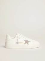 Purestar sneakers feature white leather with a silver-colored crystal star. Premium materials and cushioned insole ensure comfort and durability. Ideal for various outfits.
