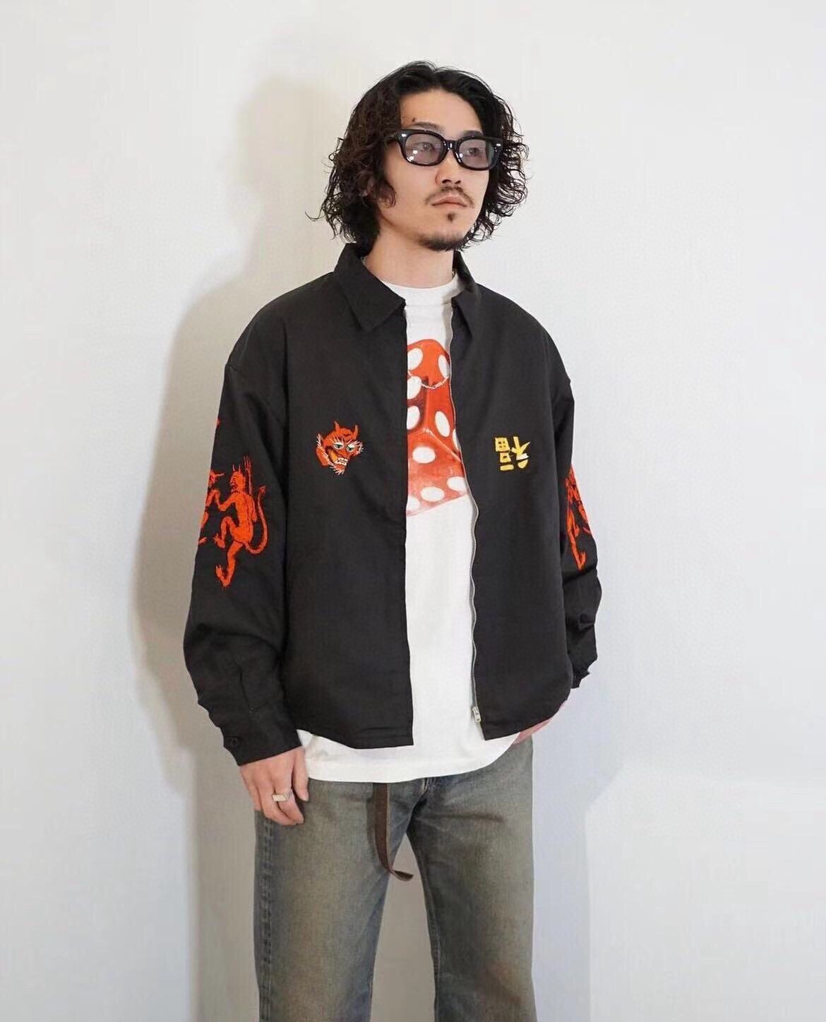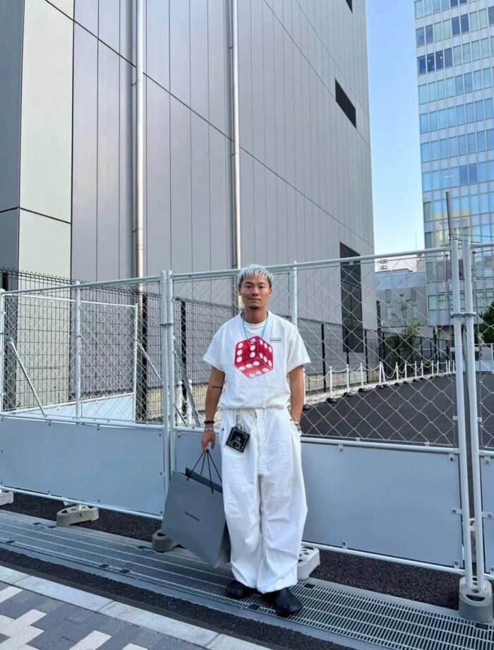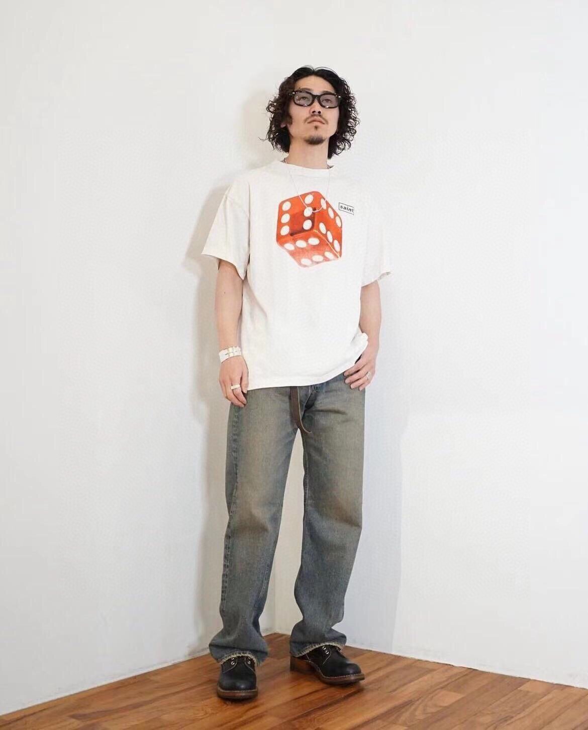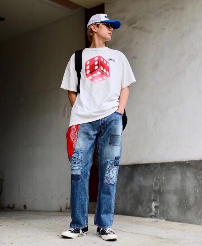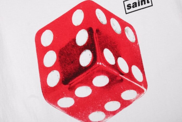 - Striking red dice logo on the chest
