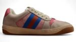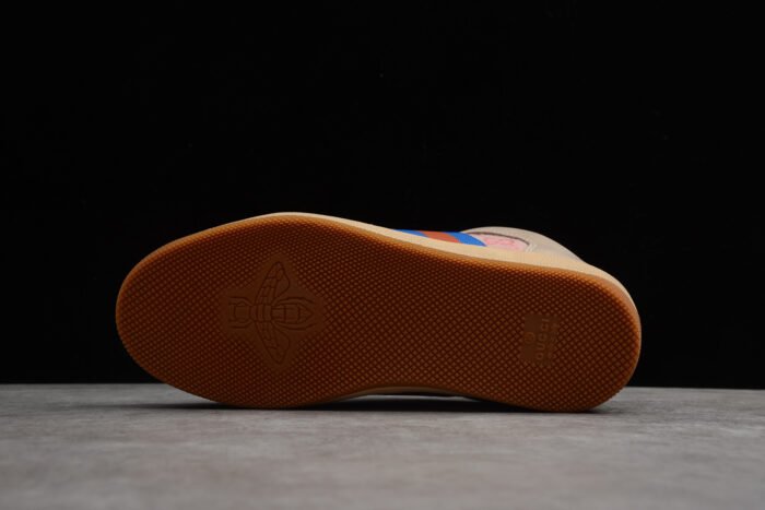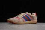The Retro Beige Sneakers with Blue and Red Stripes stand out with their nostalgic design and stylish color combination. This chic sneaker features a blend of premium suede and canvas materials. offering a soft yet sturdy look. The blue and red stripe detailing adds a pop of color. while the cushioned footbed ensures all-day comfort. The lace-up closure provides a snug fit. and the rubber sole enhances durability and grip. This pair blends vintage style with modern comfort. making it a versatile choice for everyday wear.